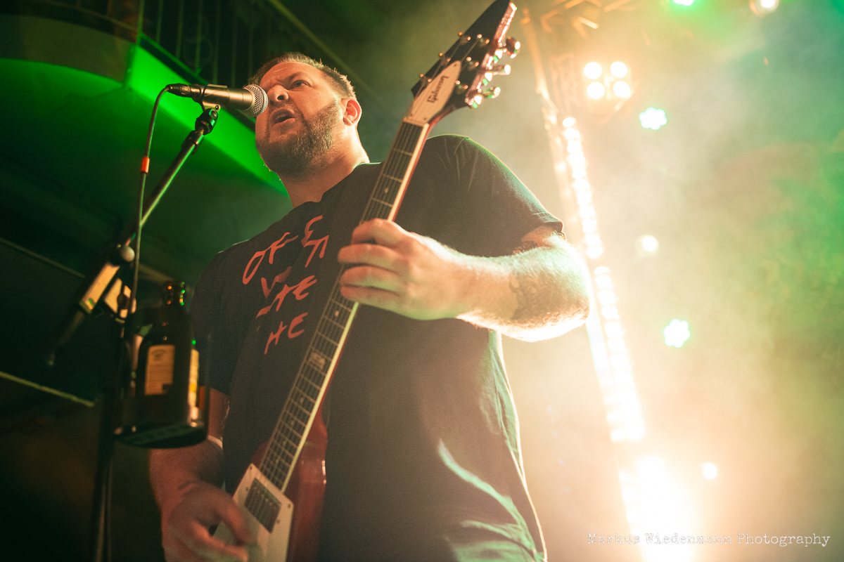 Bokassa live, that means also: Let the music do the talking. There aren’t too much speeches to the audience. It’s the music that is in the forefront which leads to a 14-songs setlist, that is delivered in 40 minutes. Hereby the guys from Trondheim run through their entire repertoire which also entails new material. ‘Garden of Heathen’ is already the fourth song of the night and I guess nobody in the room is surprised that Sick Of It All Lou Koller doesn’t contribute with vocals on the live tour. So bassist Bård Linga takes over this part and does a good job.