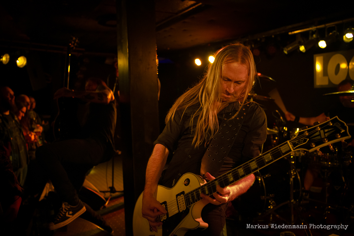 Snow and ice – Hamburg does its best to welcome Audrey Horne with a best possible Bergen-like winter atmosphere. Regardless of the winterly conditions in Germany’s north, the Norwegians made it in time to Hamburg where a show at the legendary LOGO is scheduled. Fans had no problems to get to the venue too, regardless of snow and a football derby in town. So, everything is in place at 21:00 to start a rock’n’roll party the Scandinavian style. The Hamburg-show is the first one of nine planned gigs of the band and tonight it is Audrey Horne only. There is no support act or special guest which means that the Norwegians start right away into their set with a new song called ‘Ashes to Ashes’. Taken from the band latest studio album ‘Devil’s Bell’ the opening of the show can’t be much better as the crowd immediately turns the switch and gets into the party mode. The grooving ‘Break Out’ is next before we take a step back in time to the ‘Pure Heavy’ album. The Thin Lizzy inspired ‘Out of the City’ is a welcomed moment which is appreciated by fans.