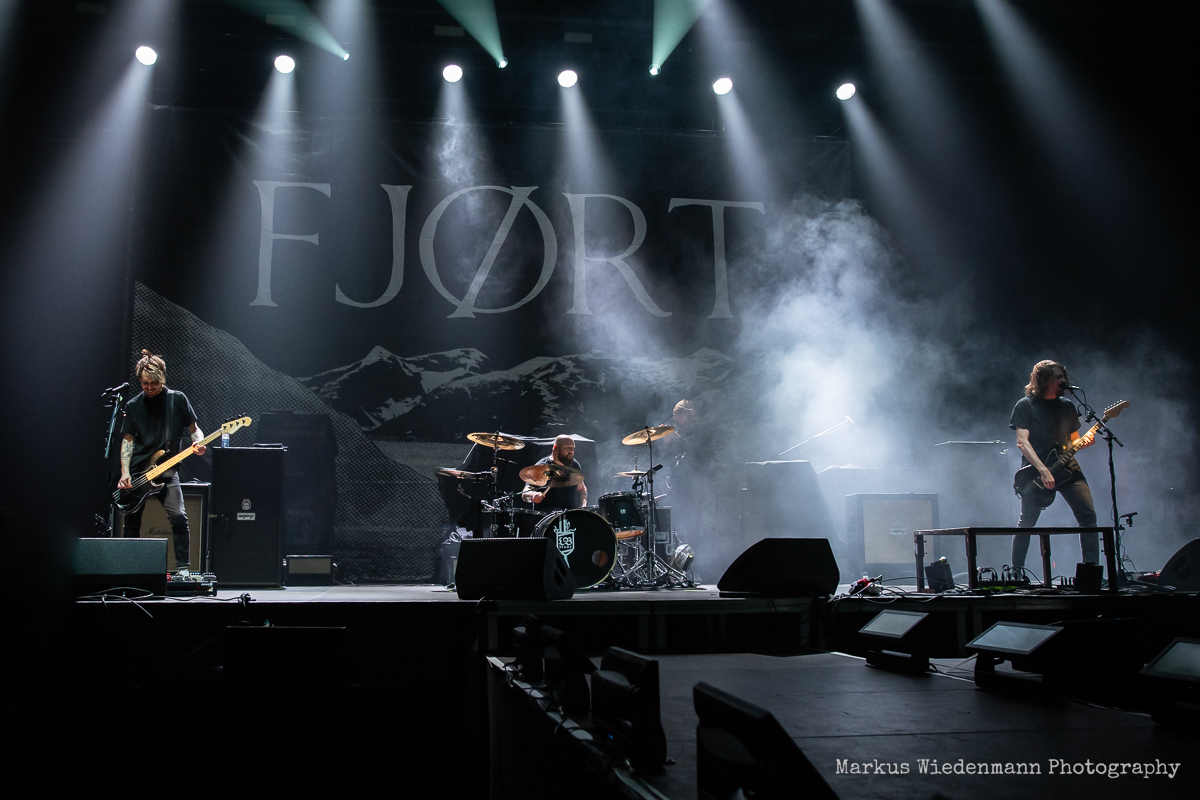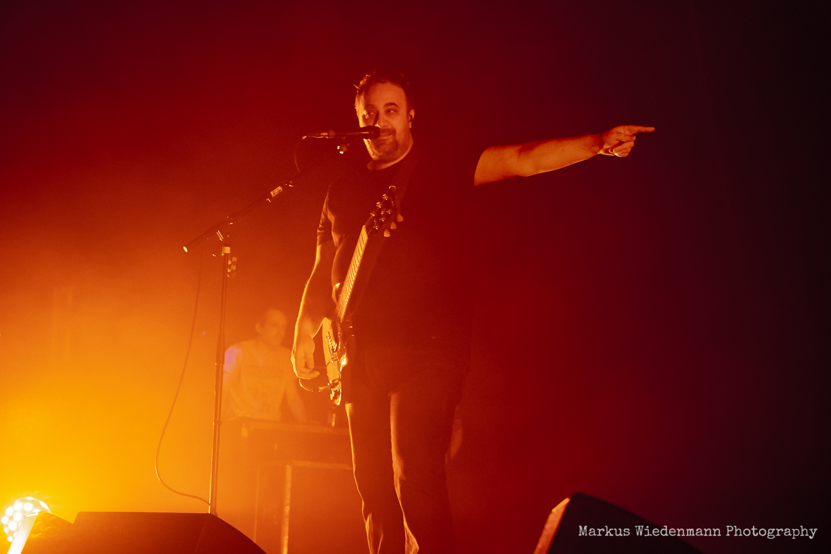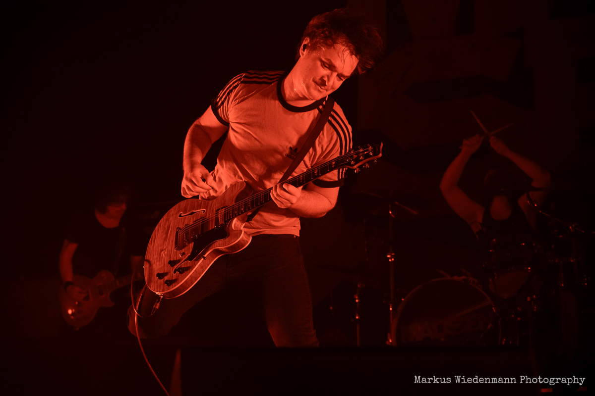 Madsen don’t miss the opportunity to personally announce their support acts. This was already the case with Raum27 and now it’s a short introduction of a three-piece formation that leaves some of the fans standing there with their mouths open. Post-core/sludge specialists Fjørt take over the stage and while it was previously rather colorful melodies that filled the hall, things are getting much darker now. The band has half an hour playing time too and they musically raze everything to the ground. Powerful riffs, screeching screams and a lot of stage acting is what characterizes band and show. Chris Hell and David Frings in particular are like dervishes of gloom on stage and it may be that some people are overwhelmed tonight by this performance. However, a small pit forms directly in front of the stage with Fjørt fans who are obviously having fun while enjoying the band. The trio seems a bit like the black sheep of tonights running order. It speaks for the Madsen fans though, who also provide the three Aachener with a deserved applause and there are even a few “We want more”-shouts resounding in the hall.