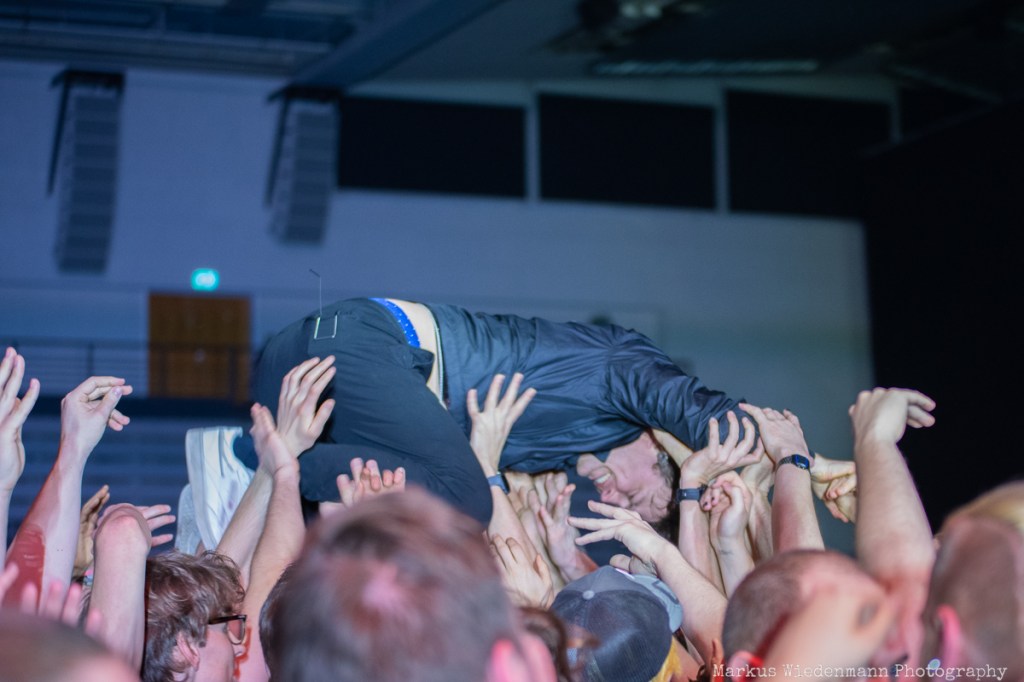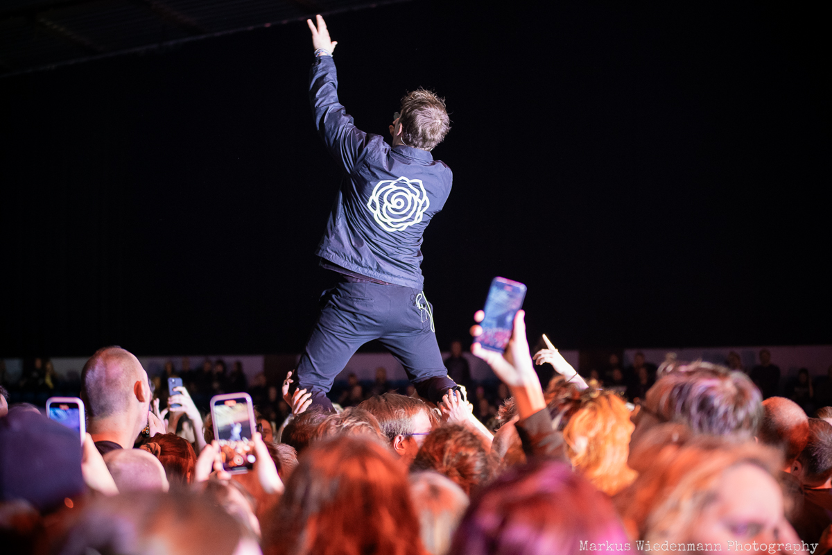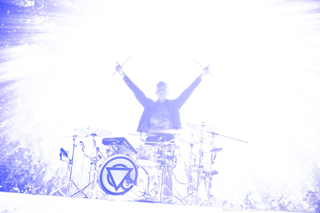 The venue isn’t exactly what you would describe as full when I enter the hall. A few early birds are sitting in the front row, but ok, it is still 45 minutes until showtime. The room starts to fill up when Blackout Problems start their set at exactly 19:00. The four guys from Munich deliver what you expect from a first act on stage. With a lot of power and passion Blackout Problems get the crowd moving and the moment frontman Mario Radetzky sings ‘PUZZLE’ in the middle of the fans the ice is broken.