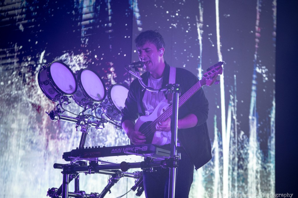 Enter Shikari live in 2024 means participating at a holistic show that counts on songs and music as well as the band provides a visual treat. Tonight the focus is on the latest studio album. The four guys play seven songs from ‘A Kiss for the Whole World’, but also go back in time with songs like ‘Mothership’ and ‘Enter Shikari’, both taken from the debut album.