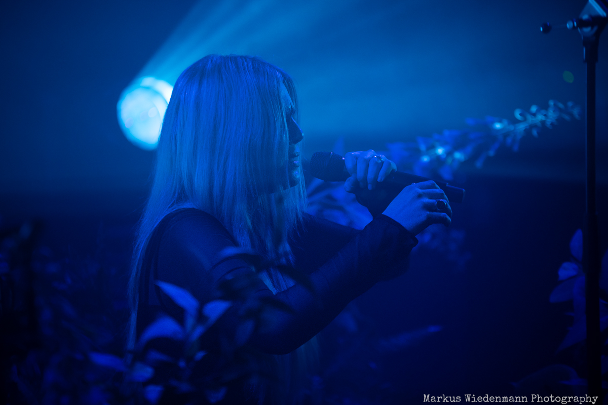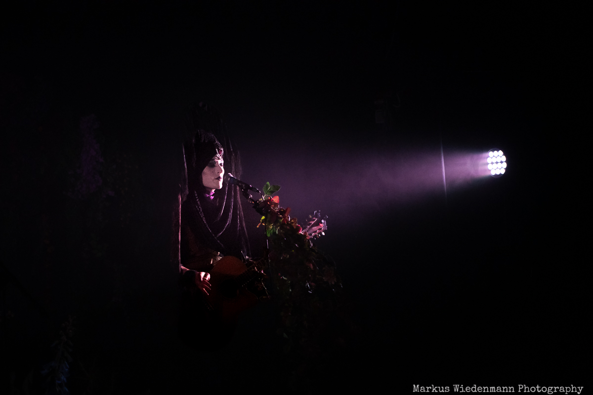 Hultén’s set is everything but loud. It is a soulful journey with birds chirping the sound of wind and crows adding to the music of the Swede. The singer/guitarist is totally in balance with himself, and he is grateful for the possibility to support Myrkur on this tour. It is amazing what powerful and at the same time fragile sound Hultén can create all by himself and the songs performed tonight are a treat for could and mind. They are a counterpart to the hectic life and the Frühjahrs Dom party outside. Fans love what they get offered too and Hultén brings everybody to right mood for the headliner.
