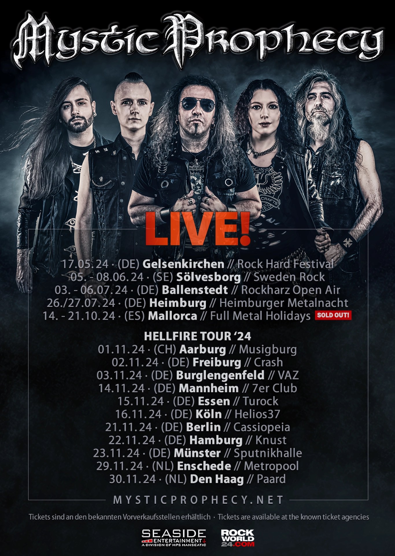 Power metal force Mystic Prophecy will embark ona tour in late 2024, including shows in Germany, Switzerland and The Netherlands. The band will also play on a few festivals this summer.