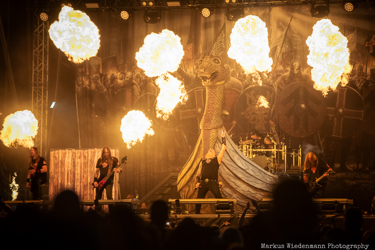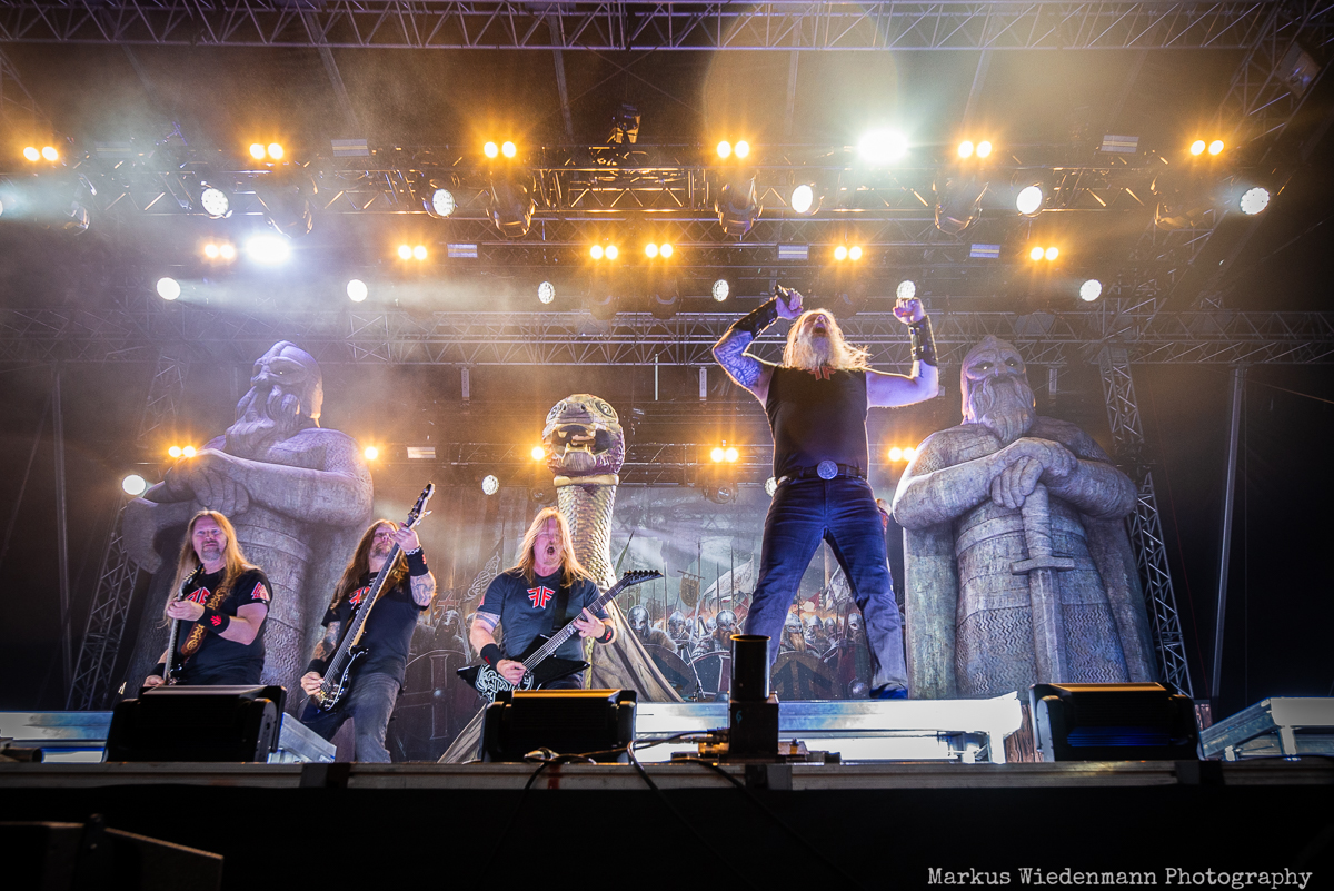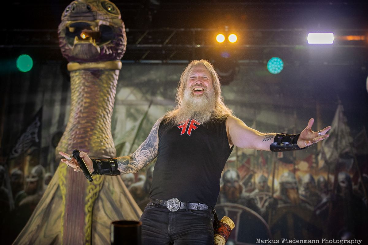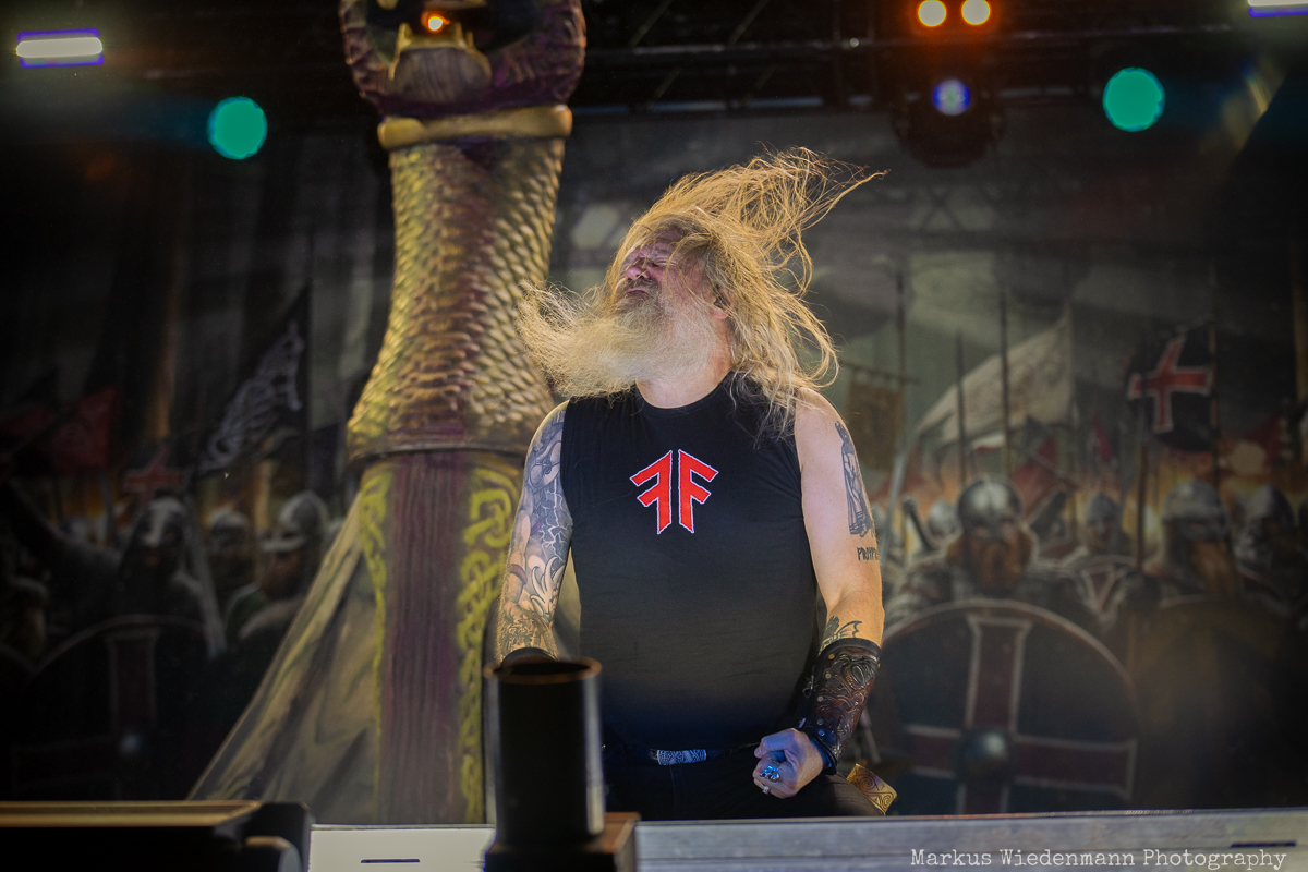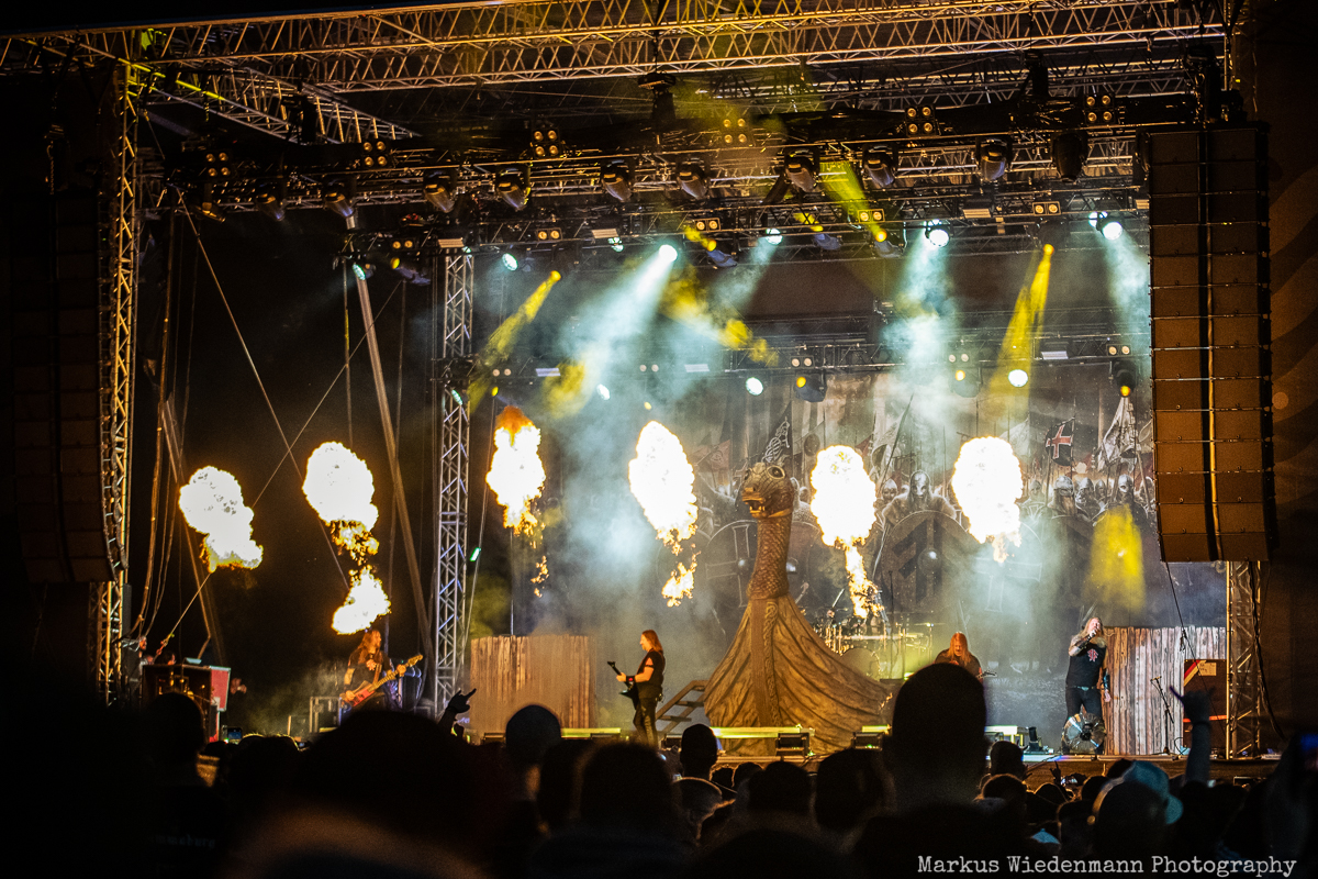 Last but not least the Vikings arrived in Elbriot. Most of the fans are eagerly waiting for Amon Amarth and their show. A few raindrops fall from the clouds just before the Swedes enter the stage and it feels like the spray of the ocean announces the Viking ship with its bearded crew.