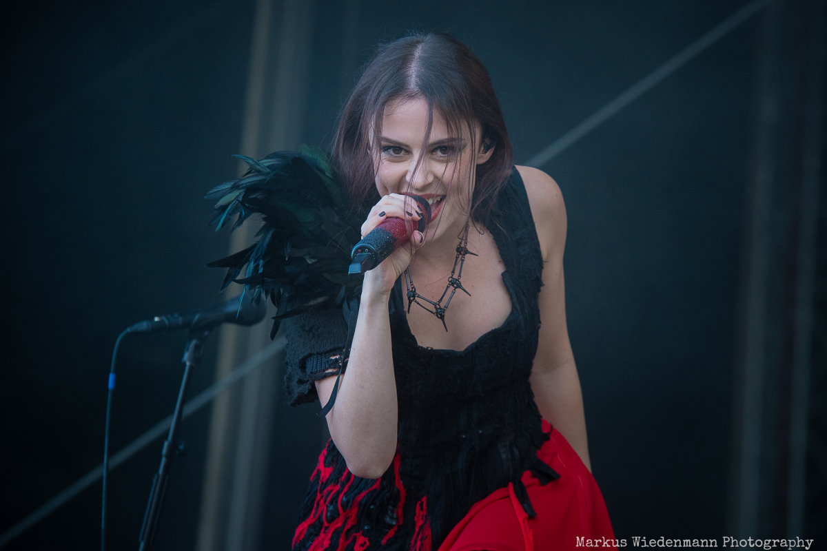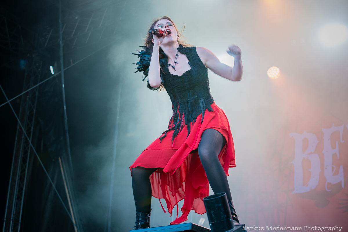 Next on the list is Beyond The Black and all of a sudden we enter the field of melodic and symphonic metal that fills the Grossmarkt area. Beyond The Black is Jennifer Haben, who is the only remaining founding member after the band went through a complete lineup change in 2016. She is the center of the band, which is also evident in the way the show starts.