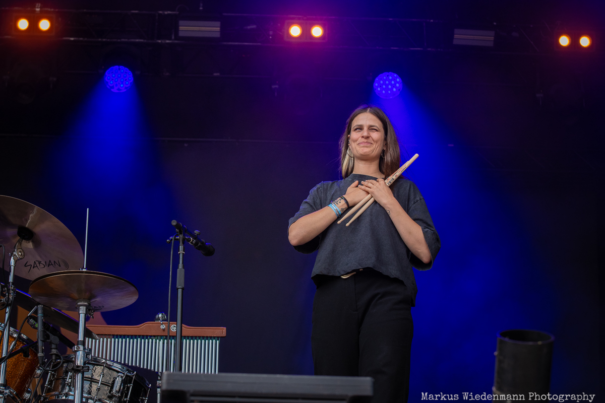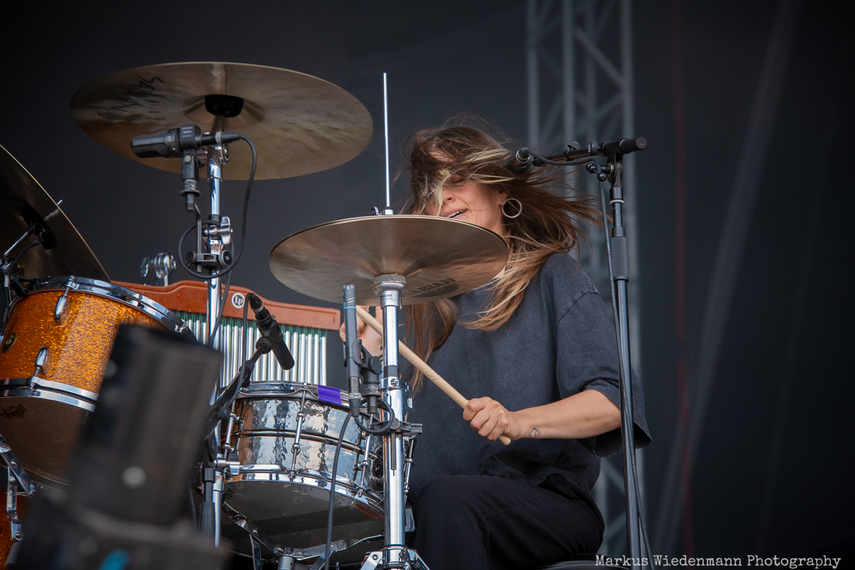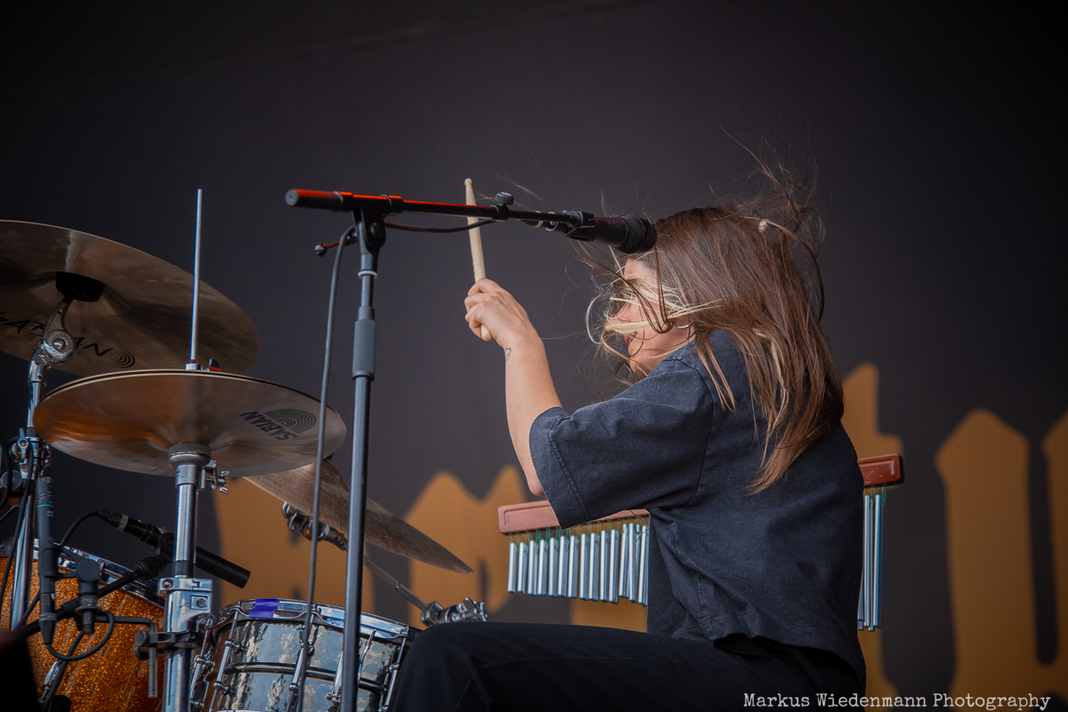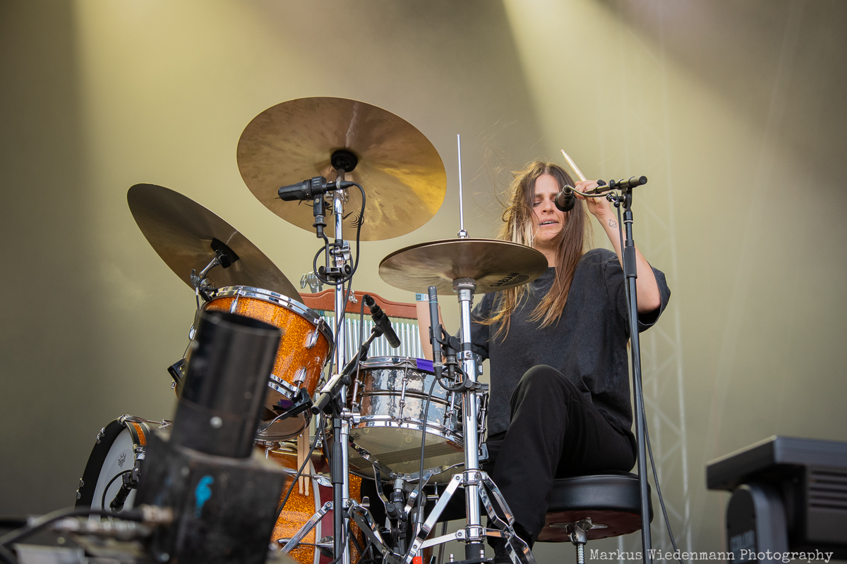 After such a great start the stage is ready for one of the most impressive newcomers. Brutus from Belgium are announced and the trio enters the stage under big applause. The band and especially singer Stefanie Mannaerts are touched by the warm welcome of the fans. Brutus have a lot of fans in the Hanseatic city, which became obvious a few months ago when their show had to be moved from the Logo to the Grosse Freiheit. Compared to the club show, a festival performance is a different ball game and Brutus mastered the challenge masterly. The trio has enough passion and authenticity to spread their musical magic even on a big stage in bright sunlight. Elbriot is the last show on this year’s festival tour for the three Belgians and they give it all they have. It is this combination of fragile moments and high-voltage outbursts that makes Brutus’ songs an experience that many people enjoy today.