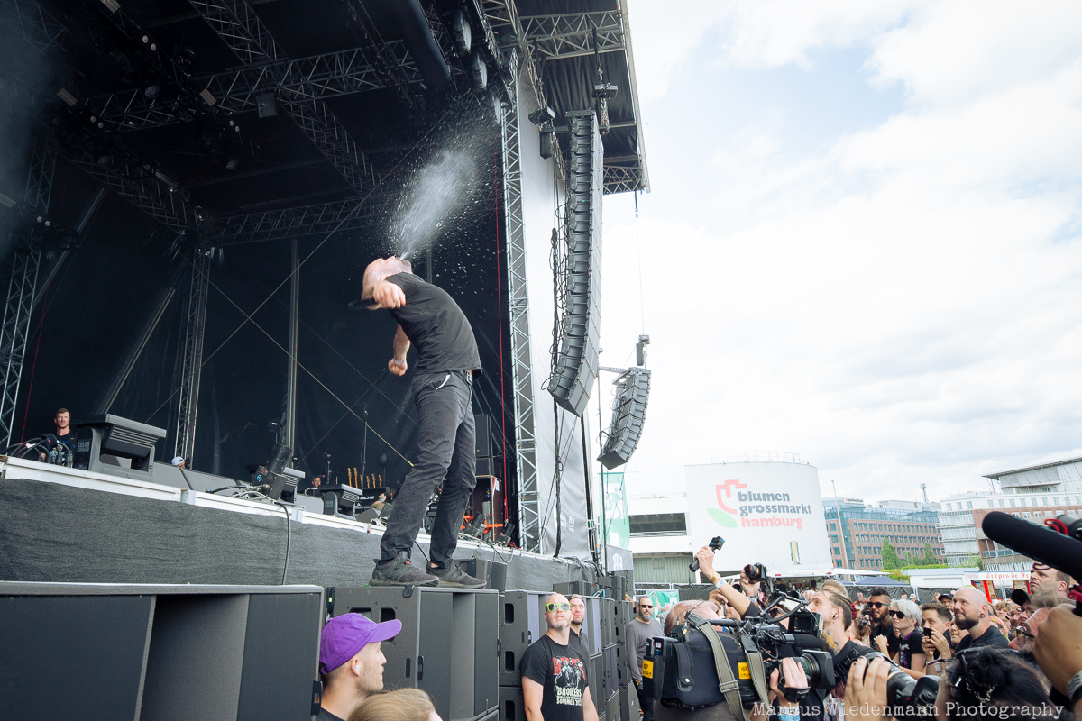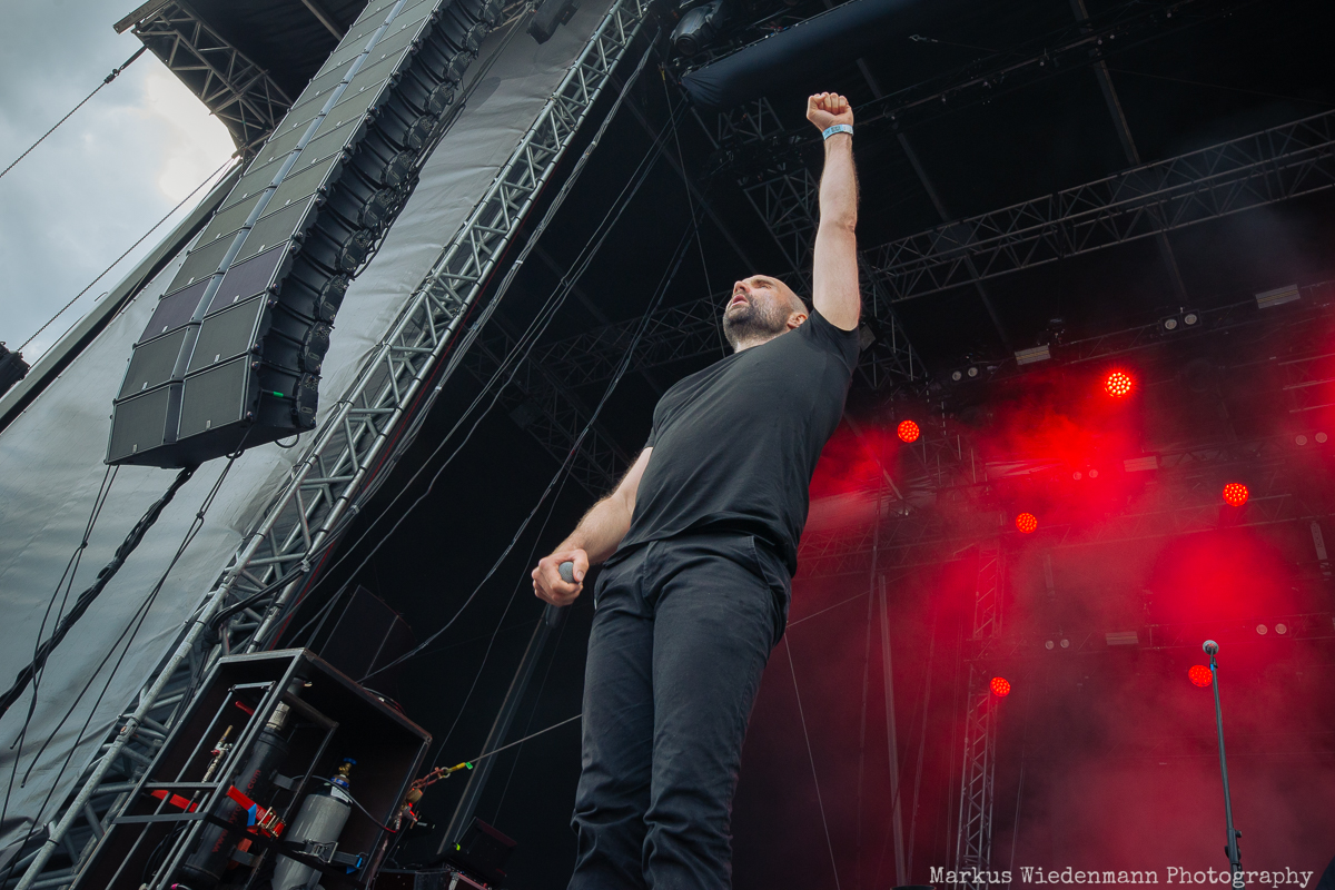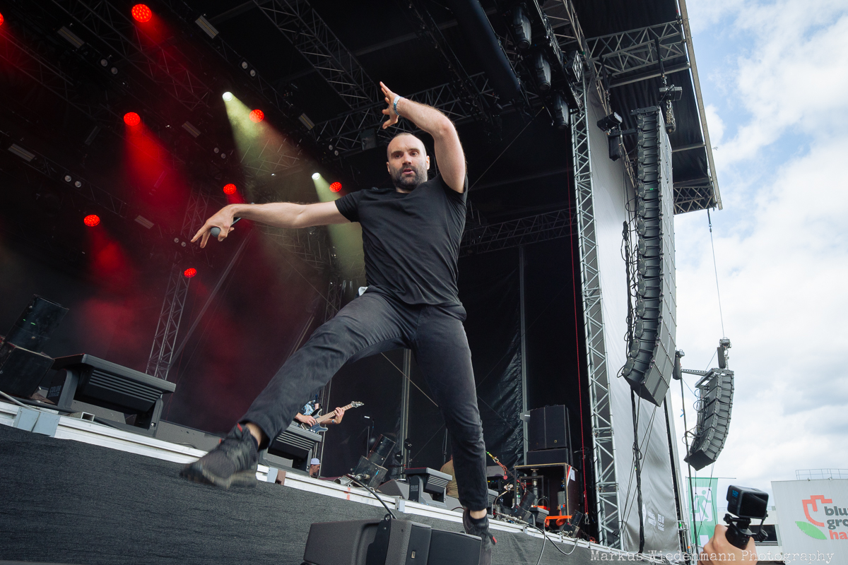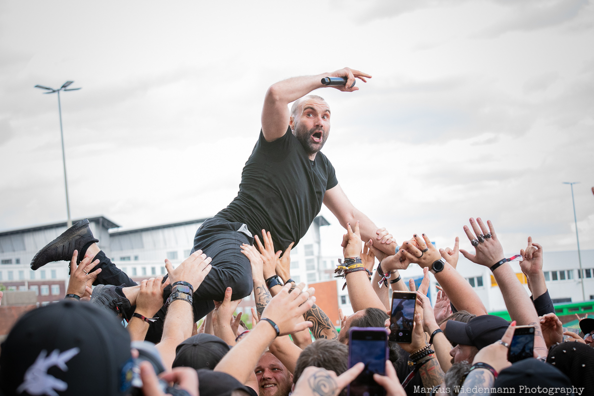 I guess during the set Hilleke spends as much time in front of the stage as on it, and the fact that the whole stage is full of fans towards the end of their show is a memorable moment of this year’s Elbriot. Neaera stand for great music and they’re a band that’s really close to their fans from whom nobody noticed that the guys were a bit nervous, as Hilleke stated earlier. Neaera is a first highlight and sets the bar for the bands to come.