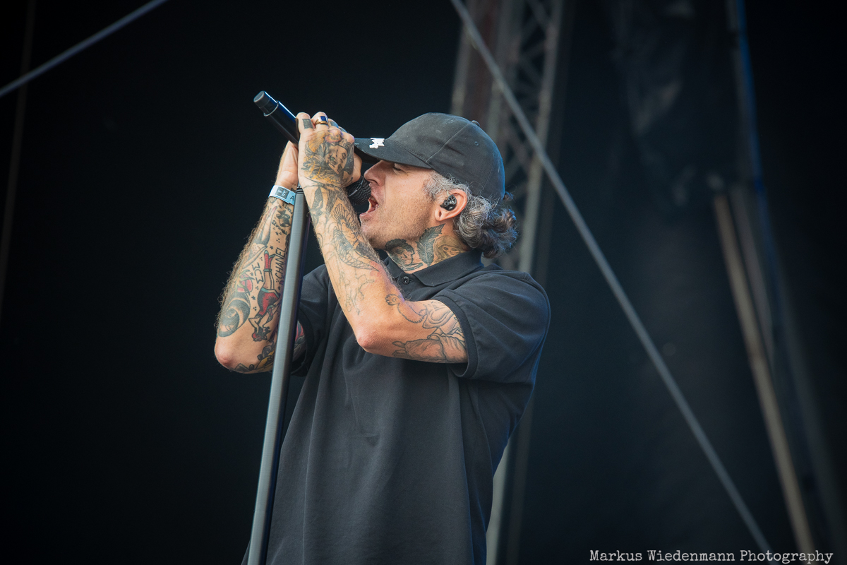 The set of The Amity Affliction finds a balanced way of aggressive sounds with the vocals of Joel Birch being the restless one on stage. Constantly on the move, the frontman screams and shouts like there’s no tomorrow, while bassist Ahren Stringer adds melodic clean vocals to the mix. However, the electric spark is missing today.