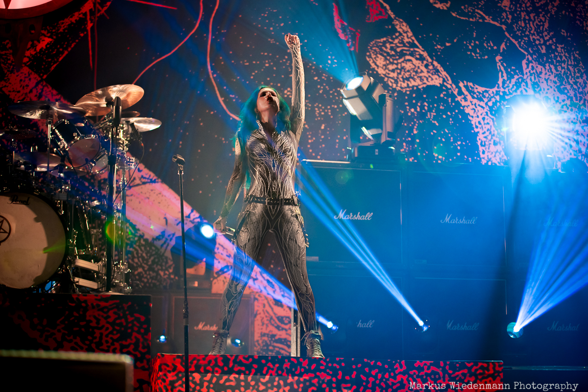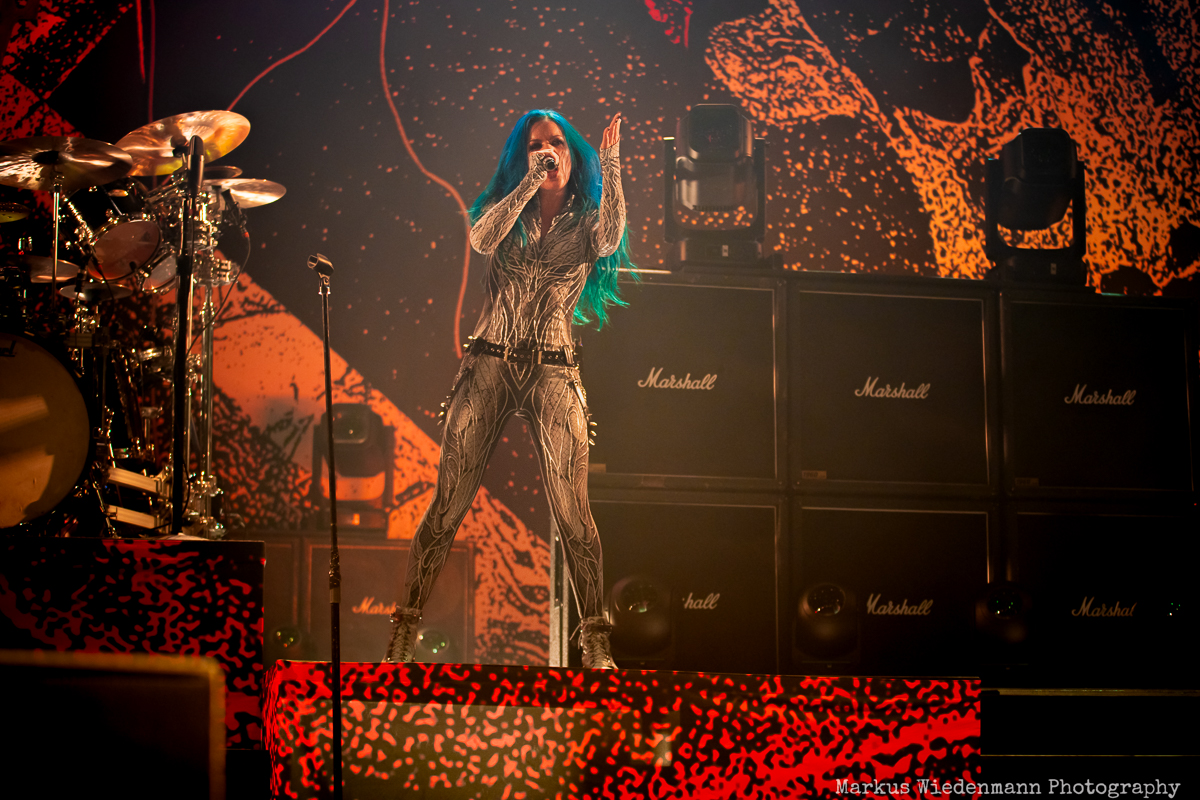 In Flames start their show with one of the bigger anthems the guys have delivered. “Cloud Connected” is the starting point of a show that includes the newer material as well as the band taking the fans back to 1997. “Food For The Gods” is like a walk down memory lane and so are “Only for the Weak” and “Coerced Coexistence”. Yet it takes some motivating word from Andres Fridén to get the crowd going but after such a motivation speech people in the room go crazy rather quickly. And there is the little story Fridén tells. It is how he came to metal because Germany is the reason for him doing what he is doing. It has been the music of Scorpions that brought him to metal when he was 10 years old.