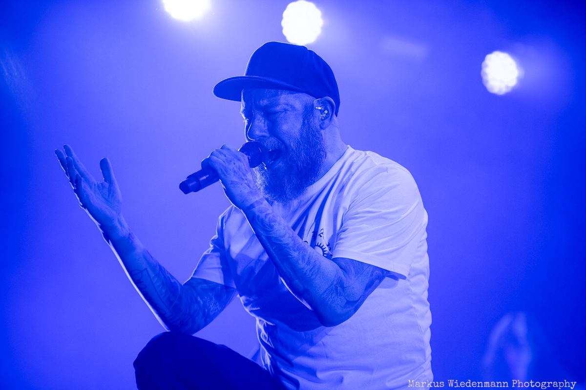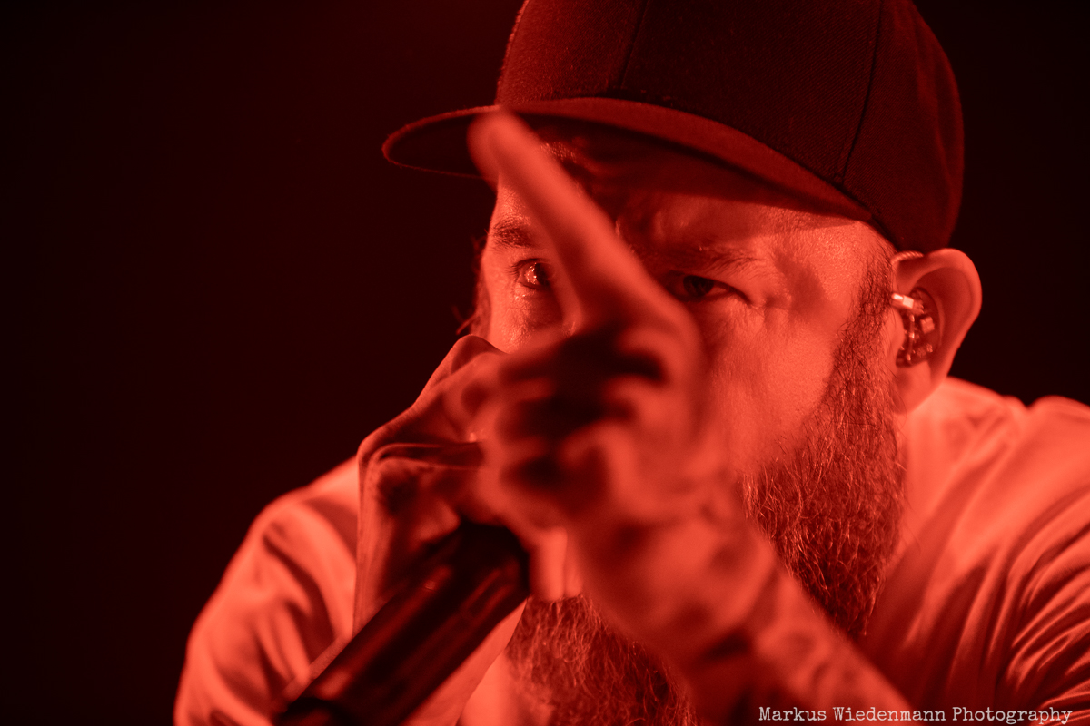 Security staff has quite a lot to do in the pit as crowdsurfers arrive there constantly. From the front to the back – everybody appreciates In Flames’ set and especially folks in the first half of the room go wild. Circle pits and a lot of jumping around is what happens while the guys on stage obviously enjoy the fun fans have in front of the stage. And Fridén also appreciating the hard work from the security who handles all crowdsurfing in a very professional and friendly way. In general one can say that there is a positive vibe in the hall which makes Alsterdorfer Sporthalle to an epicenter of metal.