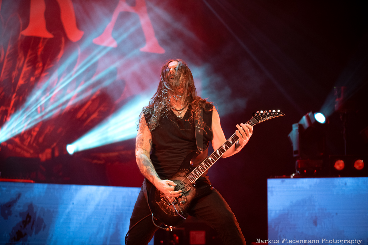 The usual opener “Redneck Stomp” starts this death metal party with a setlist that looks a bit different than in 2023 when the guys were touring with Heaven Shall Burn. Still, the five-piece from Florida touch every era of the band and that the fans enjoy this approach is shown by some crowdsurfers and a lot of headbanging. As usual, often covered in stage fog, the veterans know exactly what fans need and they give them what is expected. Full body death metal with groove and heaviness is what the guys throw into the room and everybody has fun. Obituary are one of the highlights of the evening as the music, energy and commitment melted into a metal outburst that started to bring some heat and sweat to the Inselpark Arena.