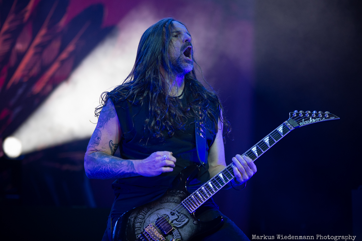 As soon as “War Pigs” from Black Sabbath begins to blast out of the loudspeakers, everyone knows that we are only a few minutes away from Sepultura‘s anniversary show, and when “Polícia” follows, everyone in the Inselpark Arena is ready for some thrash metal.