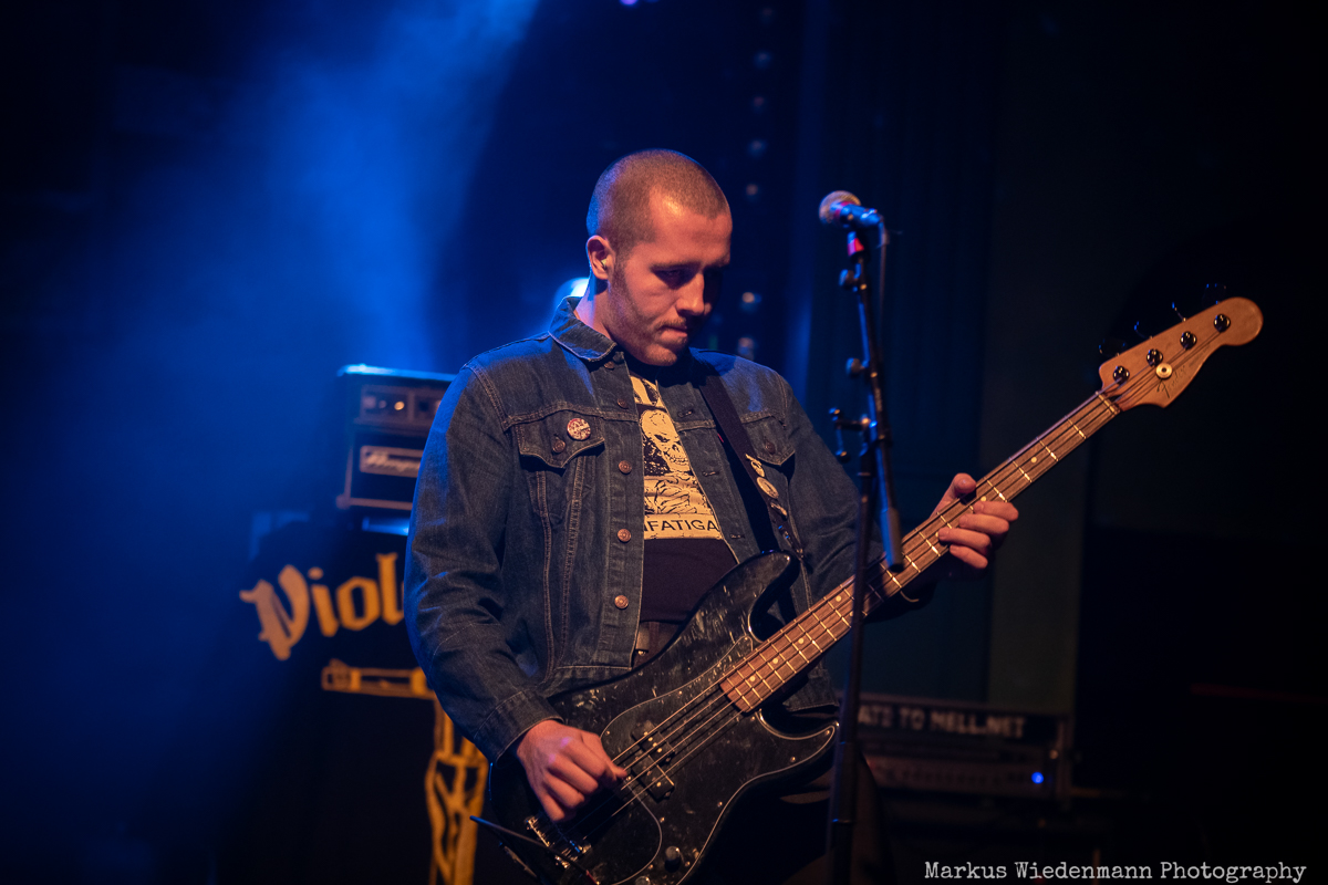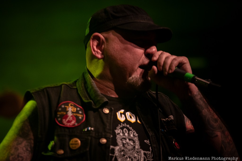 Violent Way enter the stage at 8pm and it is OI punk that fills the hall. In the beginning not many fans find their way to the front of the room. The majority is still hanging around the bar with a beer, a scenario that changes during the set as the very authentic streetpunk unfolds its embedded energy during their show. More and more people answer frontman Nick Terlecky’s question “How do we feel?” with “good” and even “great”. And finally, when he asks everyone to take a step forward, the ice is broken.