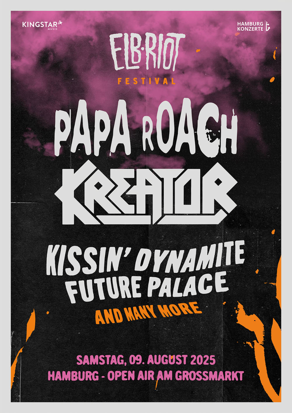German thrash metal titans Kreator will be part of the Elbriot 2025 festival as well as German rocker Kissin’ Dynamite and Future Palace.