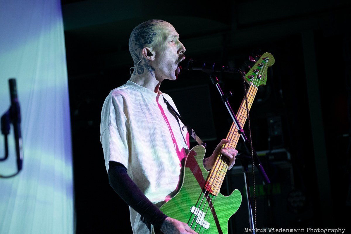 The first band on stage tonight is Doodseskader, which means ‘death squad’. I haven’t heard of the band before and what the duo delivers is overwhelming. You can like or dislike the fusion of sludge, hardcore and metal, but the power that Tim de Gieter and Sigfried Burroughs produce is impressive. With almost manic ecstasy the duo plays songs that cover everything from mellow tones to raging outbursts. Supported by a projection on the backdrop, including all the lyrics of the songs, Doodseskader’s show becomes a multimedia event. It’s like witnessing a dystopian fever dream with pounding drums, roaring bass and two musicians sharing the vocals. All in all the band started the evening in a good way.
