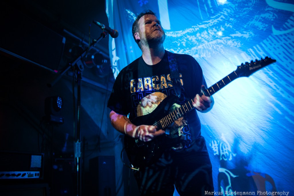 It takes a while until Svalbard begin their show. Although the stage change doesn’t take too long, the fans have to wait quite a while before the quartet hammers the first riff into the room. Since the projection is still on, some guys even use the time for some shadow theater activities.