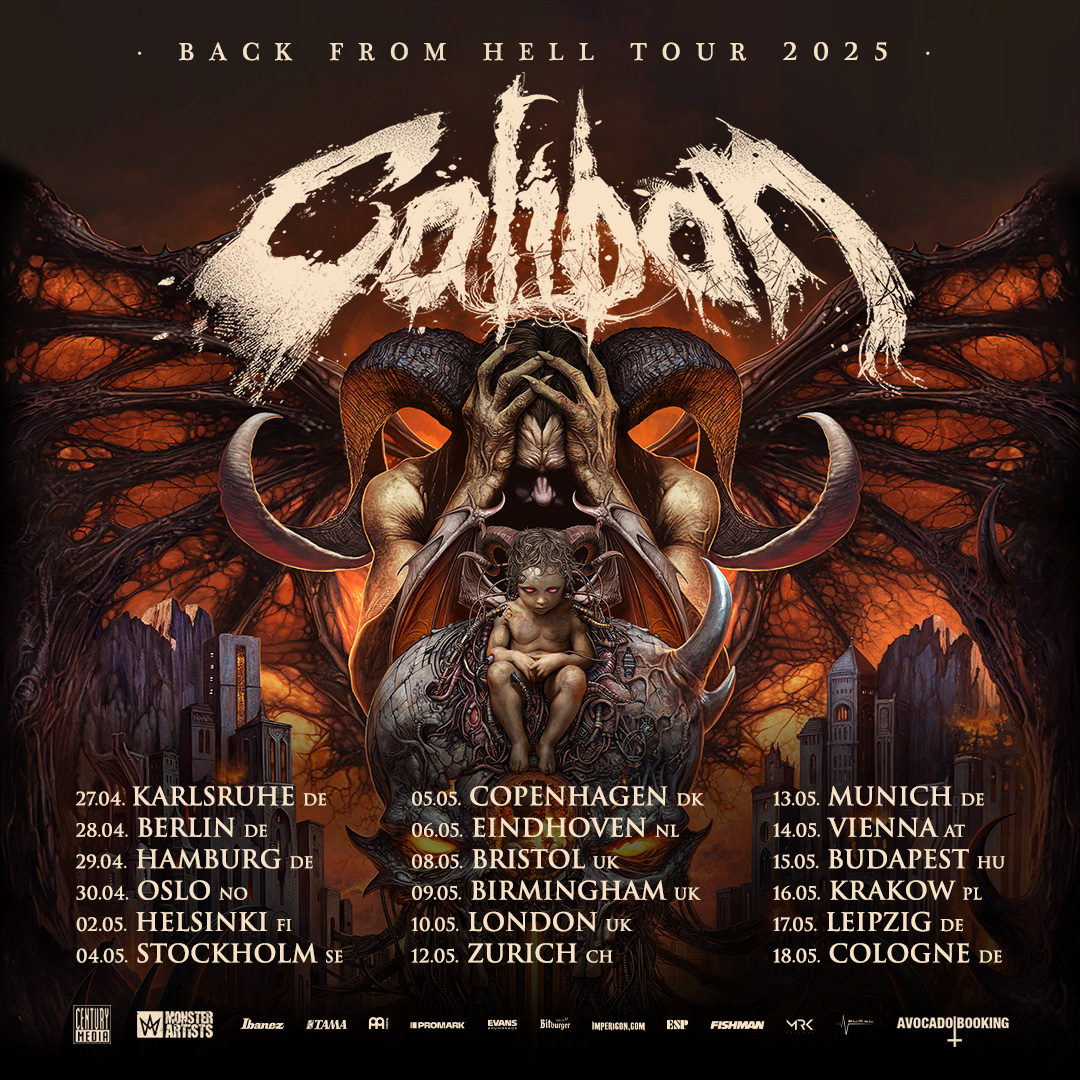 German metalcore band Caliban announced a new tour. The “Back From Hell Tour 2025” includes 18 shows in Europe and UK, starting on April 27th, 2025 in Karlsruhe, Germany. The final show of this roadtrip will take place on May 18th, 2025 in Cologne, Germany. On April 29th, 2025 Caliban will play a show at Gruenspan, Hamburg.