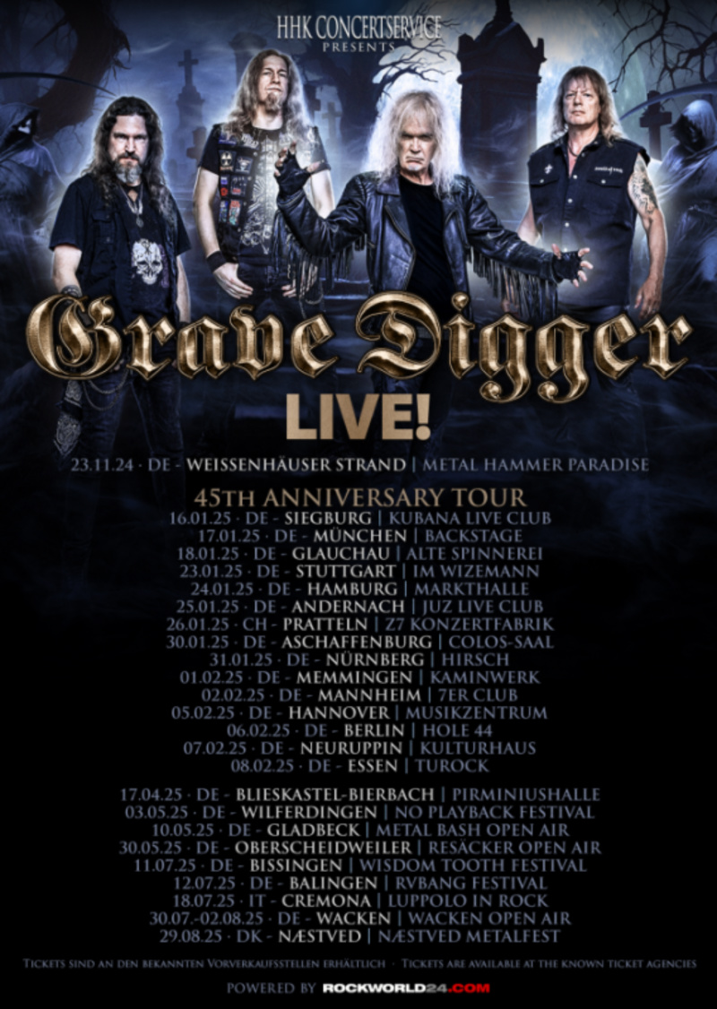 To promote the new album, Grave Digger will also embark on a tour in early 2025 including a show at Markthalle, Hamburg on January 24th, 2025: