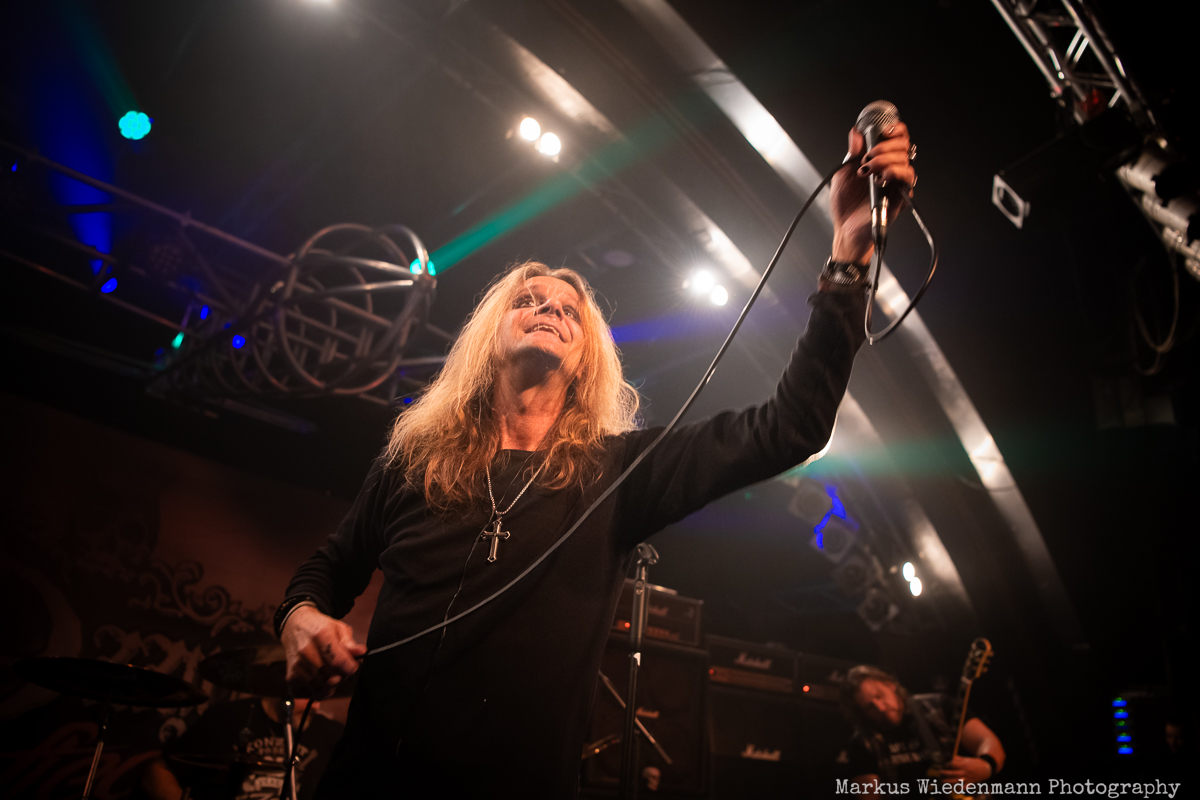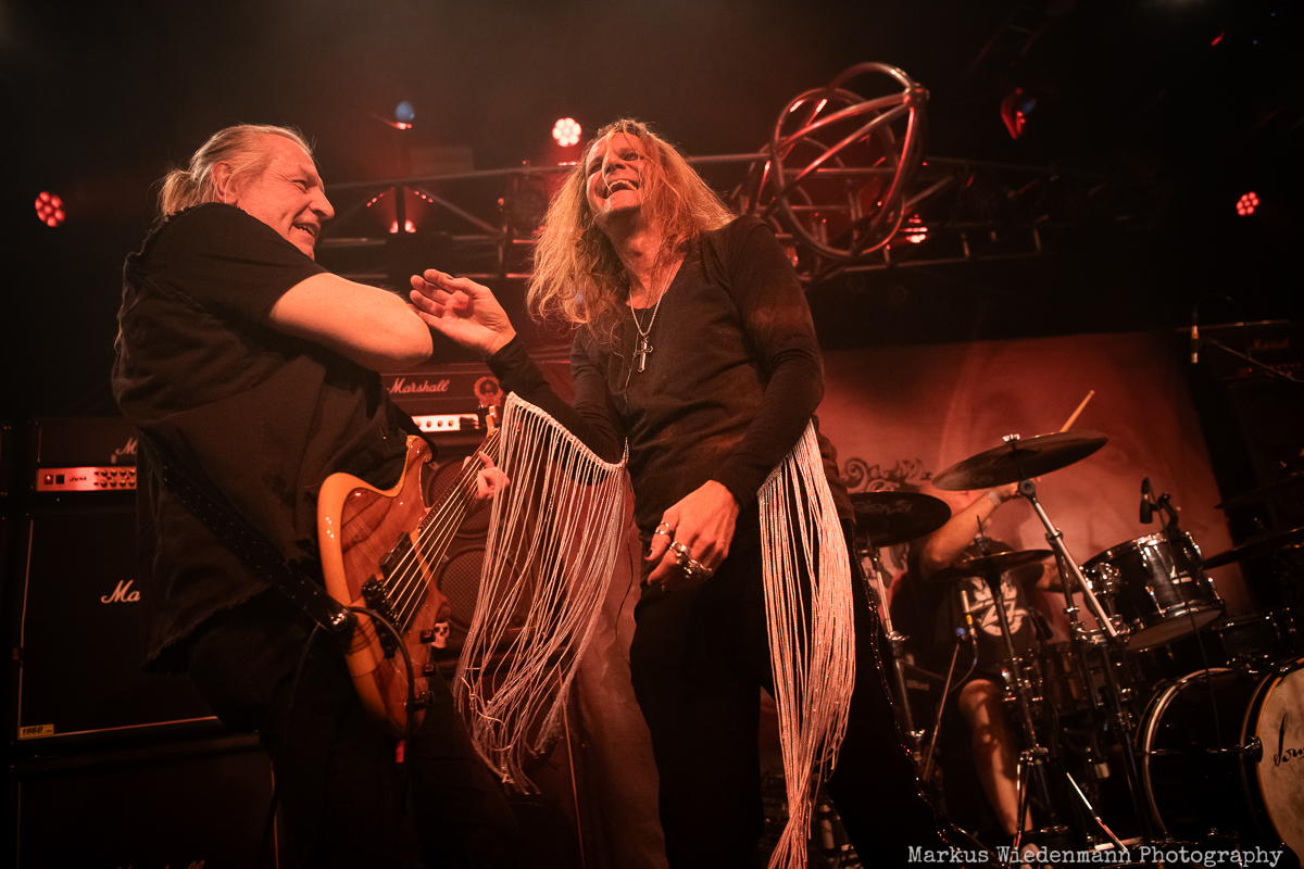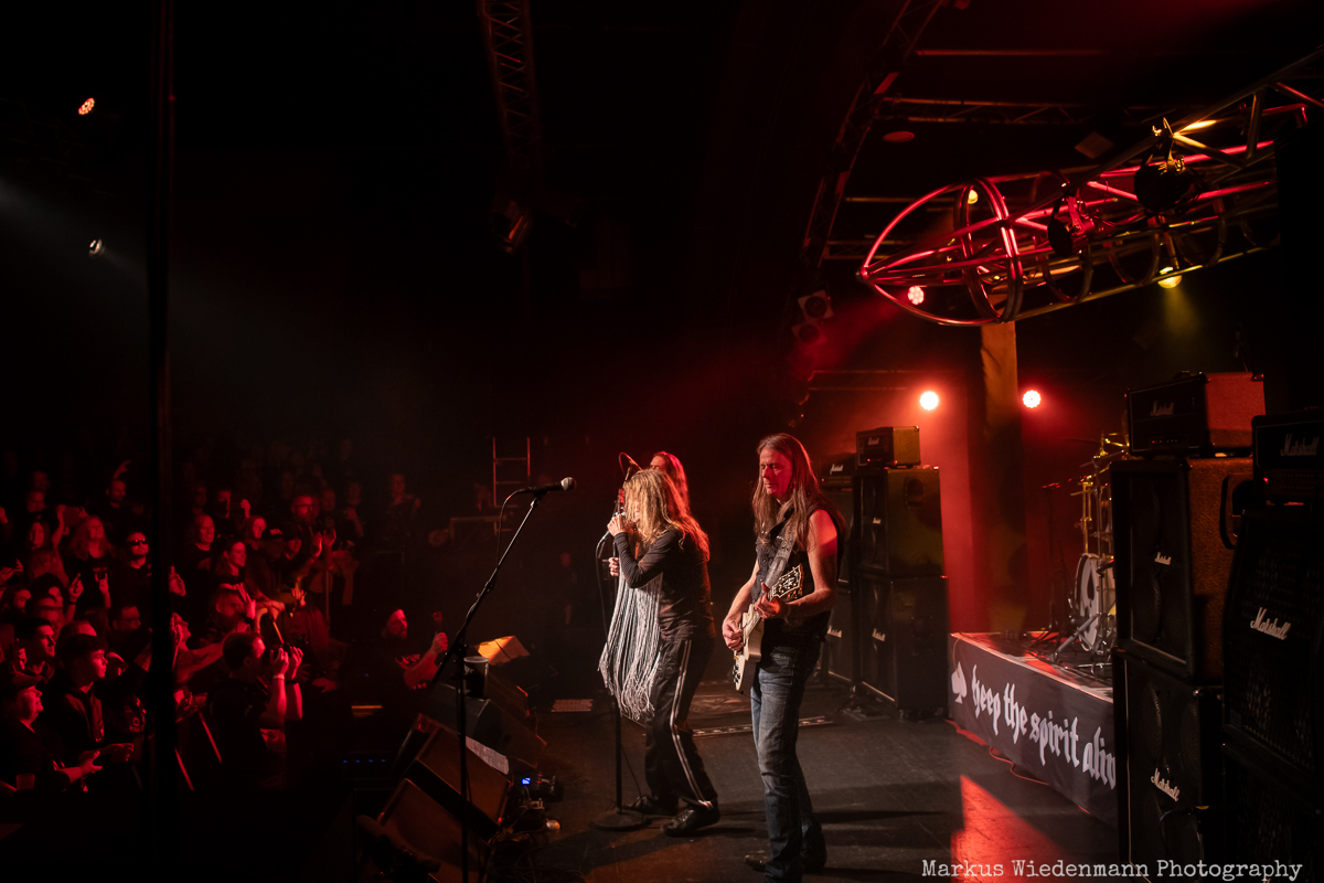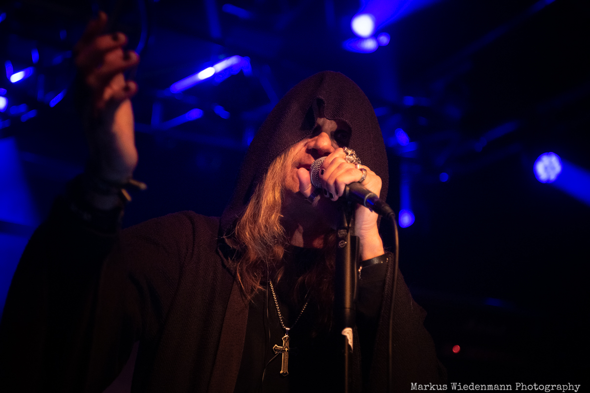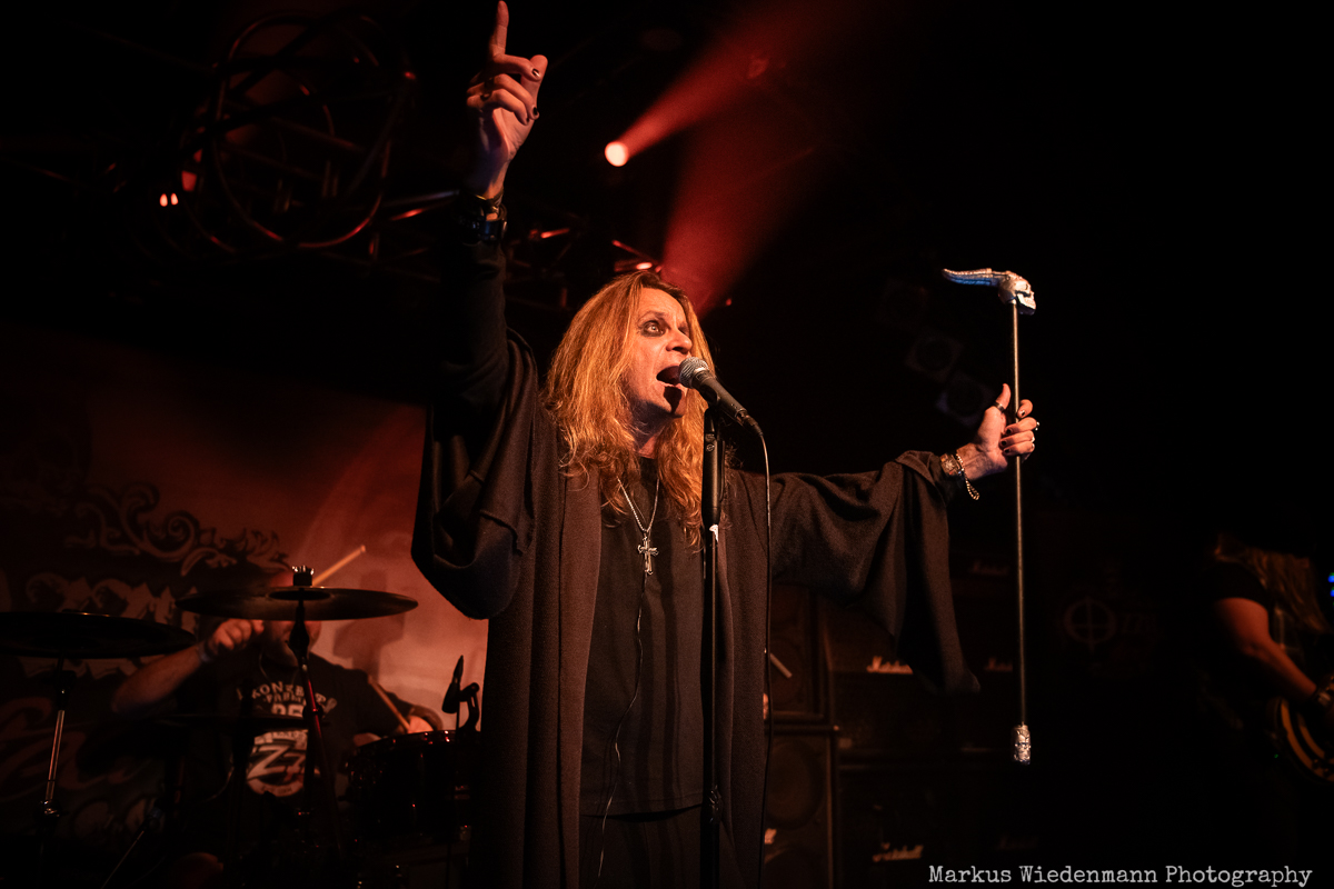 The band, formed in 2018, opens with “I Don’t Know” and delivers an energetic show. It doesn’t take long for Ozzyfied to raise the temperature in the Markthalle. Besides the well-executed music, it’s the performance of Wanner, whose voice comes pretty close to the one of Ozzy Osbourne. This is also valid for his stage performance, which includes some Osbourne-like moves, the mascara-eyes and stage cloths representing the different Ozzy eras. It’s a strong contribution to a visual statement that never feels like clownery or carnival.