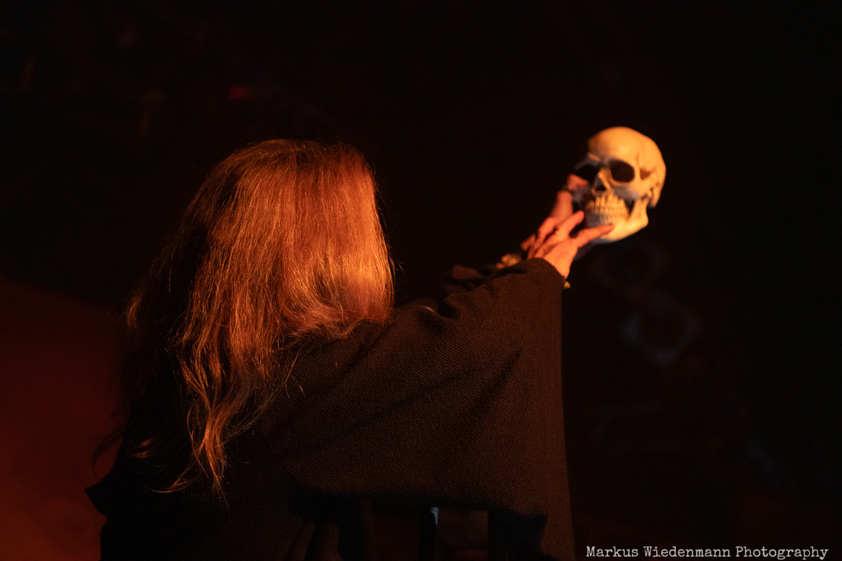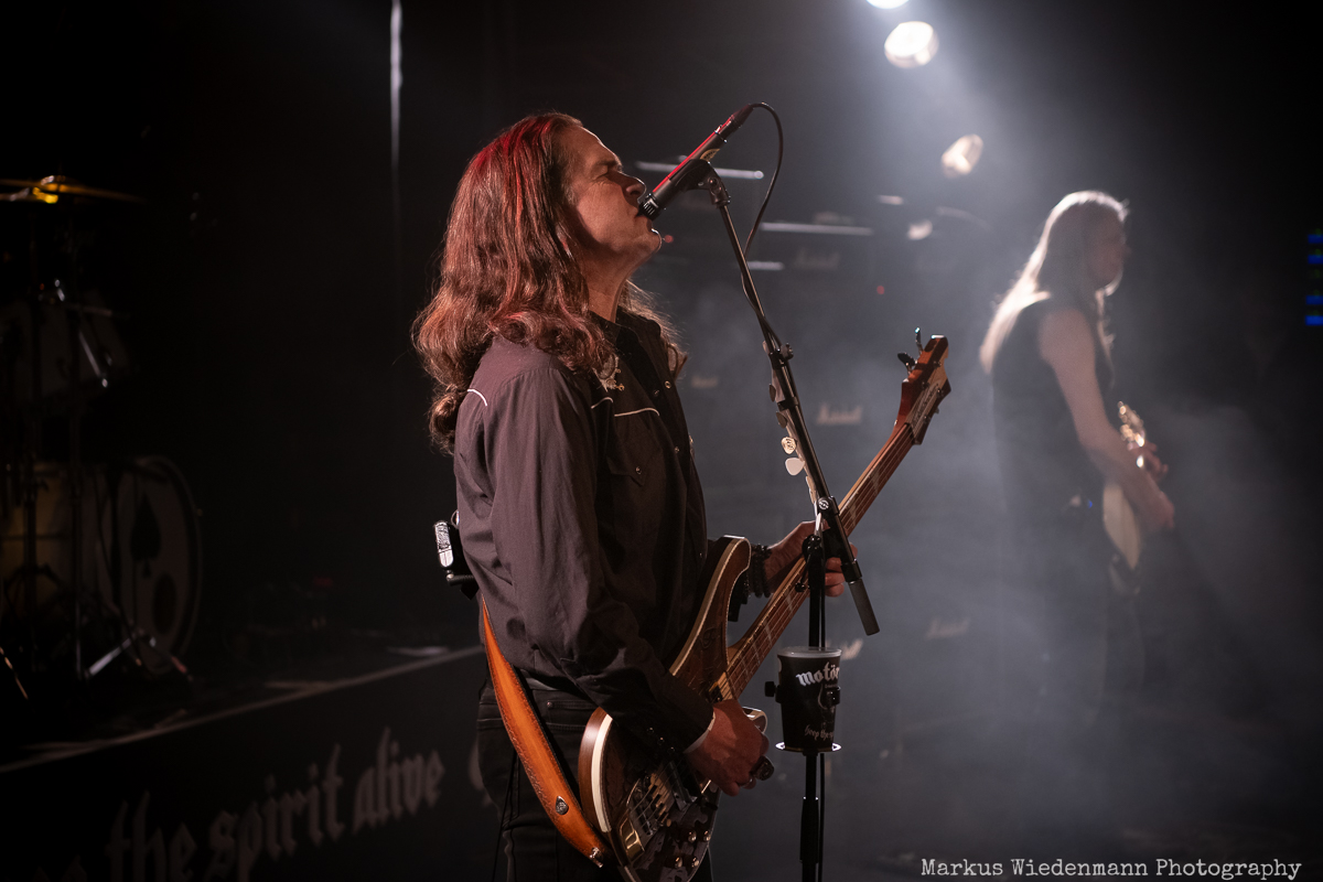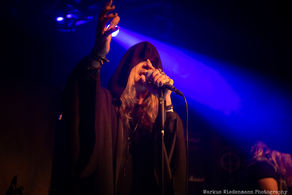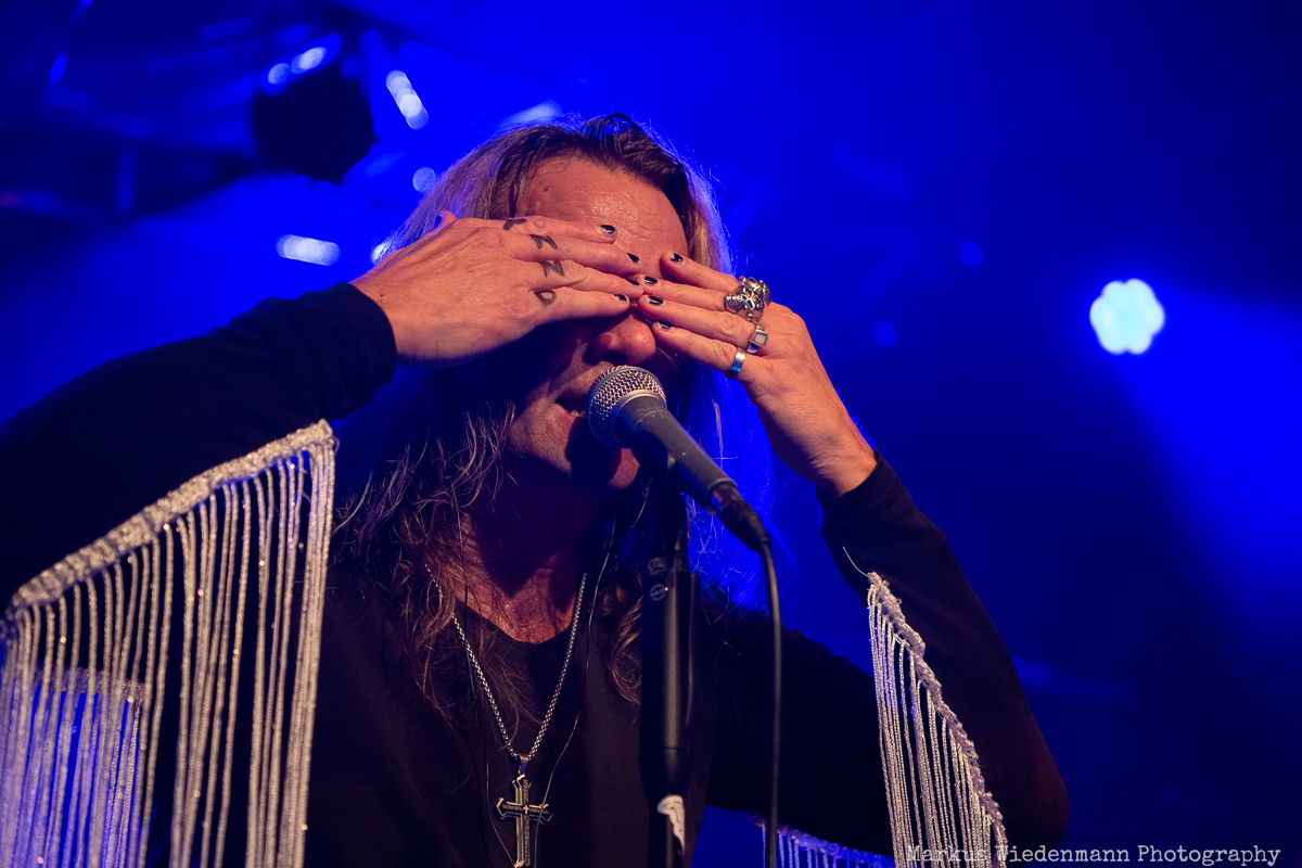 The band, formed in 2018, opens with “I Don’t Know” and delivers an energetic show. It doesn’t take long for Ozzyfied to raise the temperature in the Markthalle. Besides the well-executed music, it’s the performance of Wanner, whose voice comes pretty close to the one of Ozzy Osbourne. This is also valid for his stage performance, which includes some Osbourne-like moves, the mascara-eyes and stage cloths representing the different Ozzy eras. It’s a strong contribution to a visual statement that never feels like clownery or carnival.