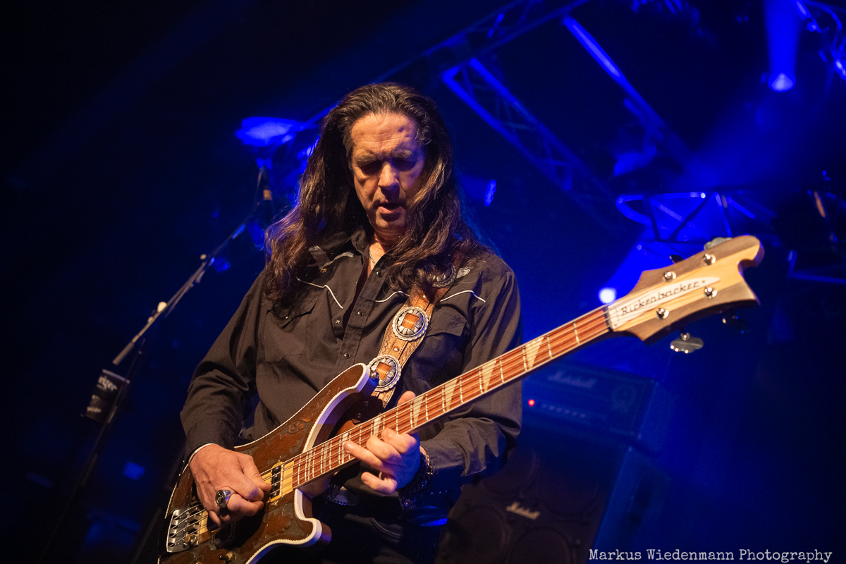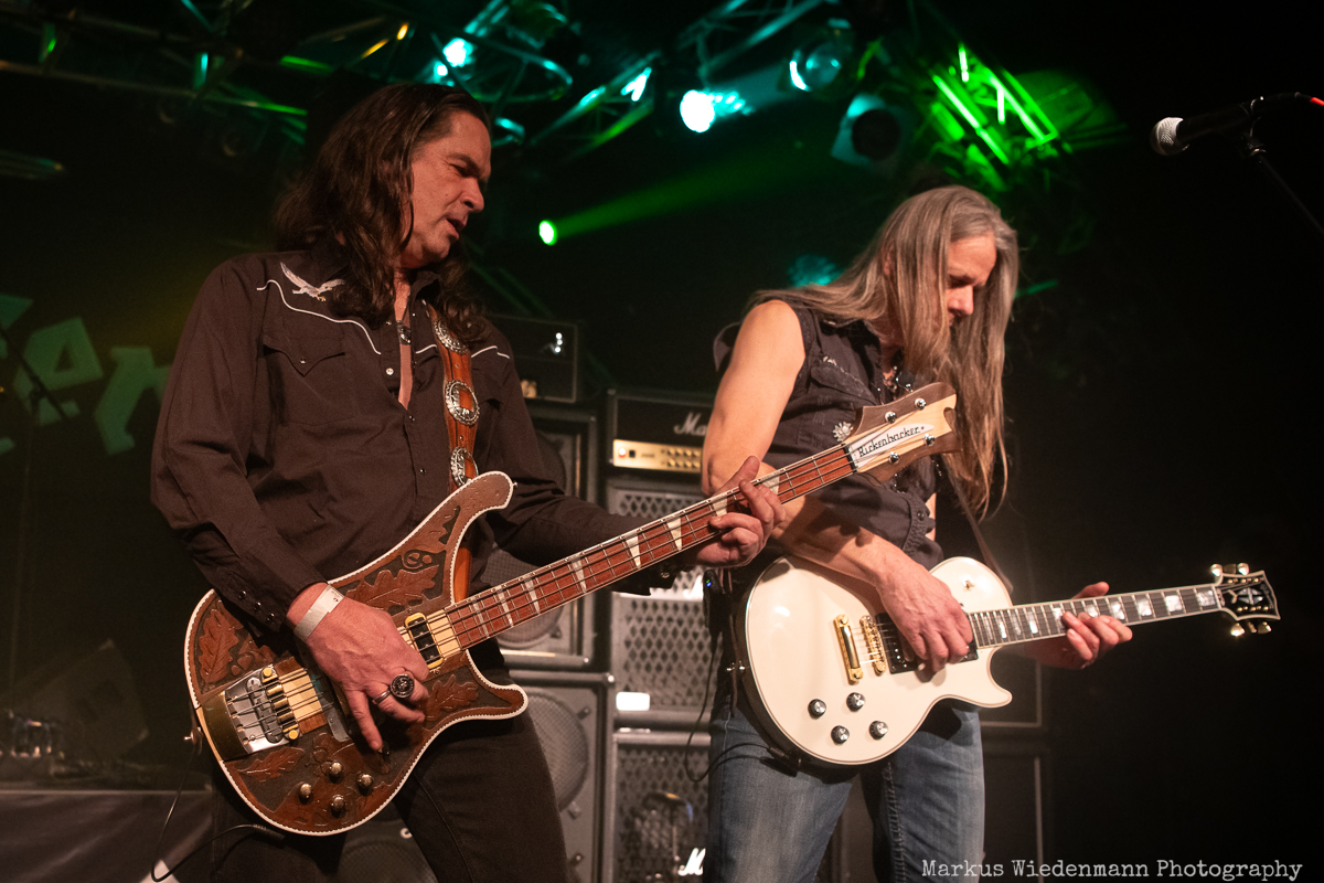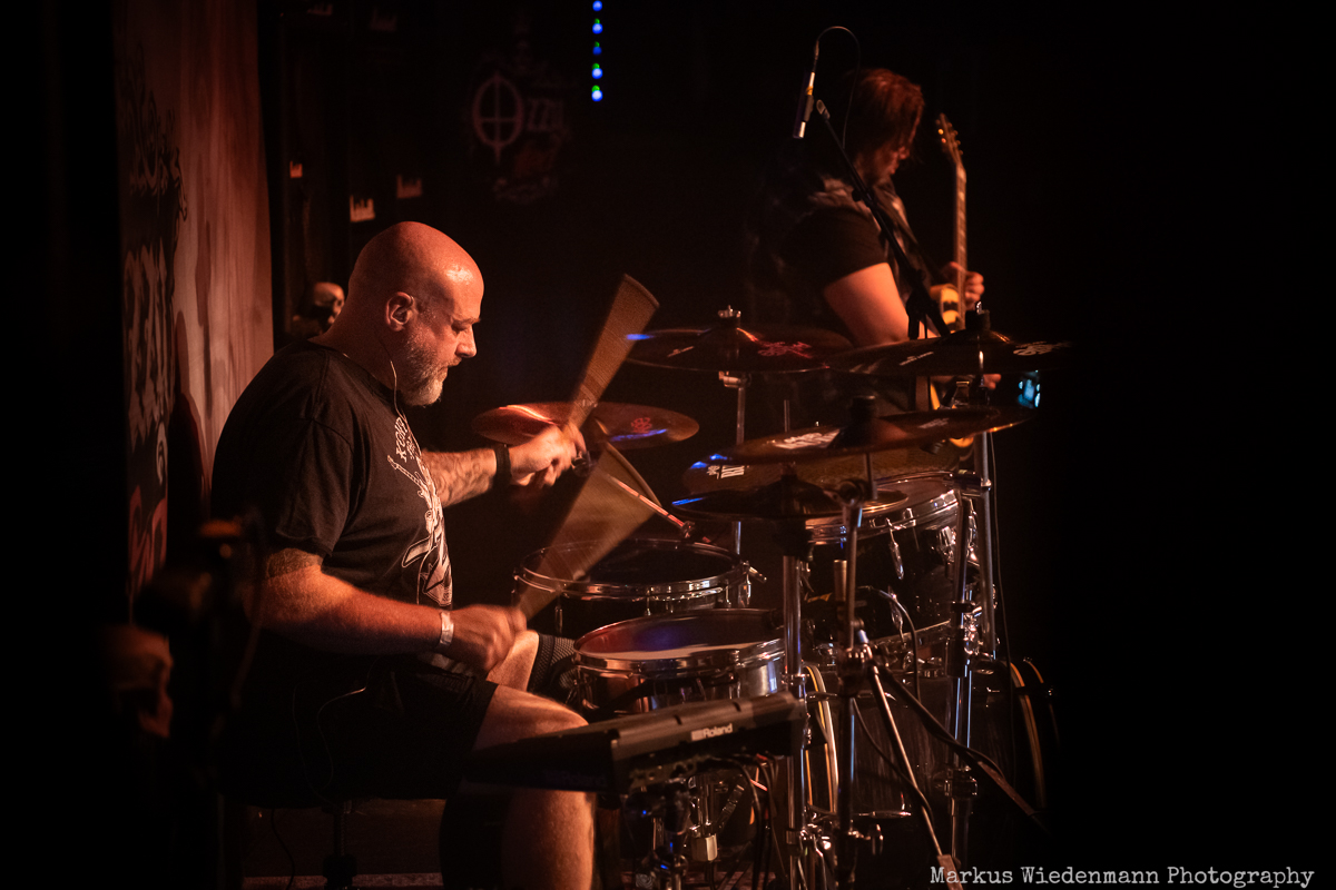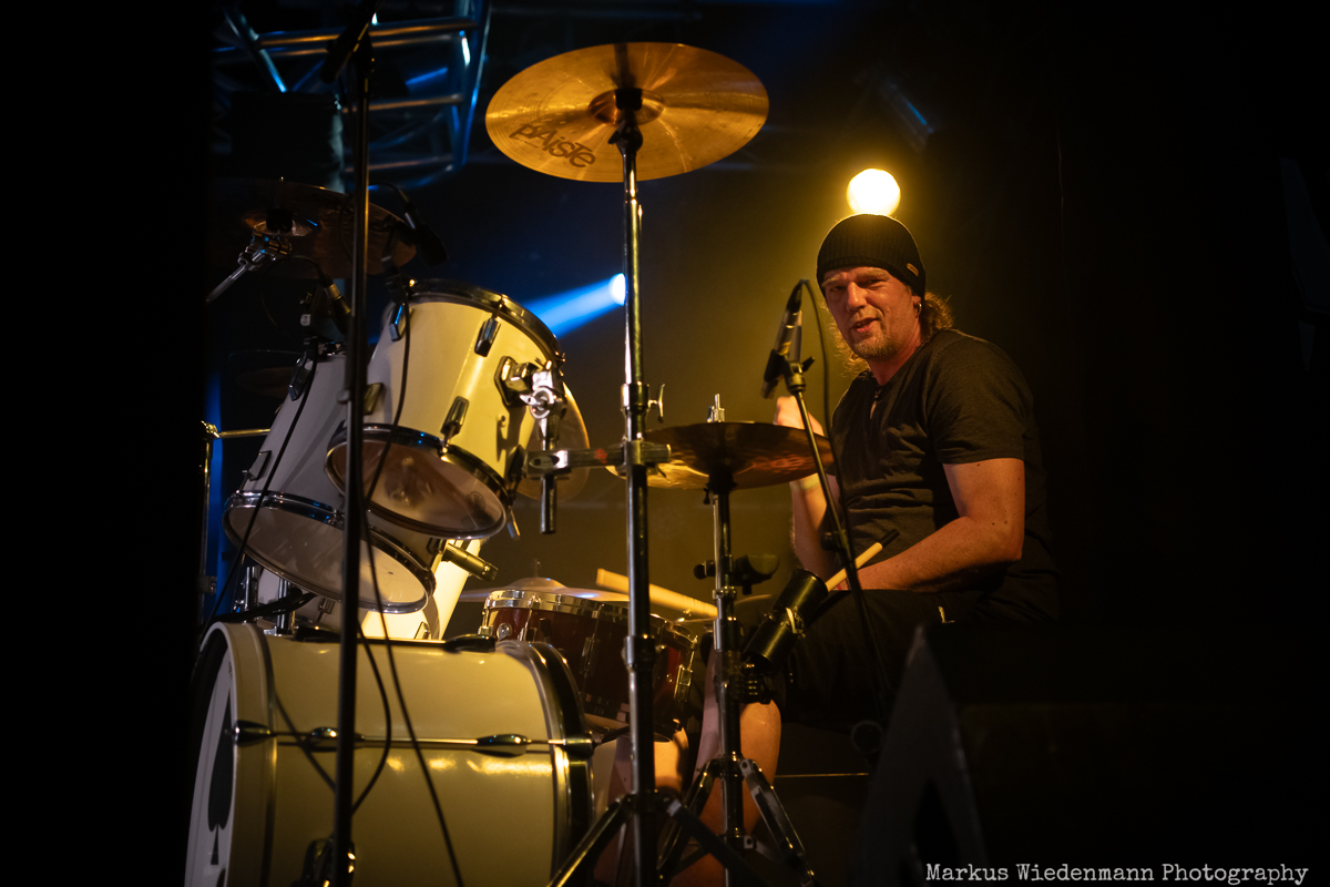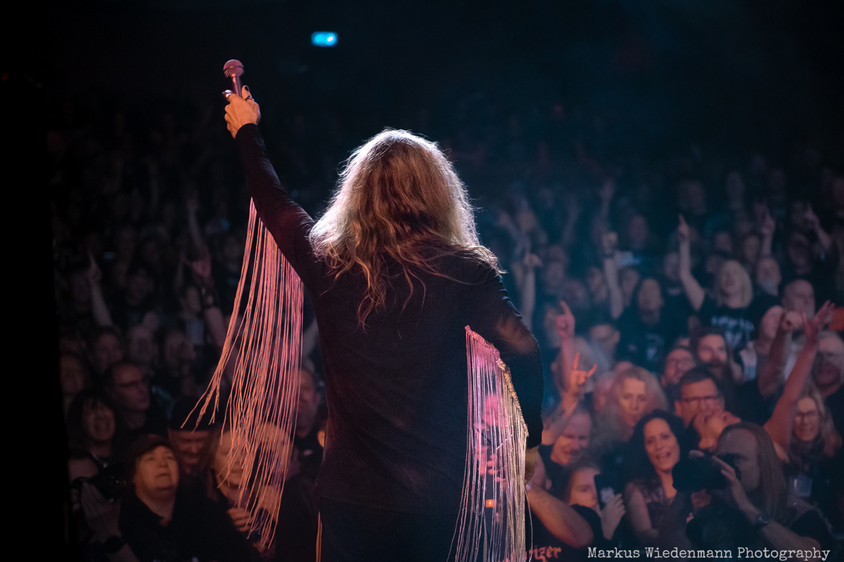 The band, formed in 2018, opens with “I Don’t Know” and delivers an energetic show. It doesn’t take long for Ozzyfied to raise the temperature in the Markthalle. Besides the well-executed music, it’s the performance of Wanner, whose voice comes pretty close to the one of Ozzy Osbourne. This is also valid for his stage performance, which includes some Osbourne-like moves, the mascara-eyes and stage cloths representing the different Ozzy eras. It’s a strong contribution to a visual statement that never feels like clownery or carnival.