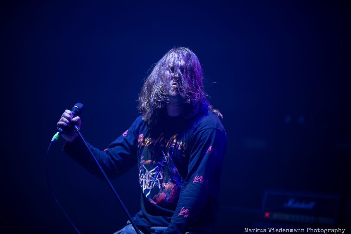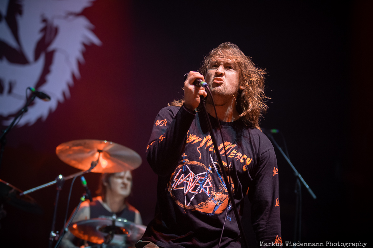 While it’s clear that the doors will open at 18:30, it’s not so clear when the first band will enter the stage. Announced was 20:00, but it was already at 19:00, when Detroit metal powerhouse Child Bite takes the stage. Due to the unclear schedule and longer queues in front of the entrance, the hall is quite empty when Child Bite start their set.