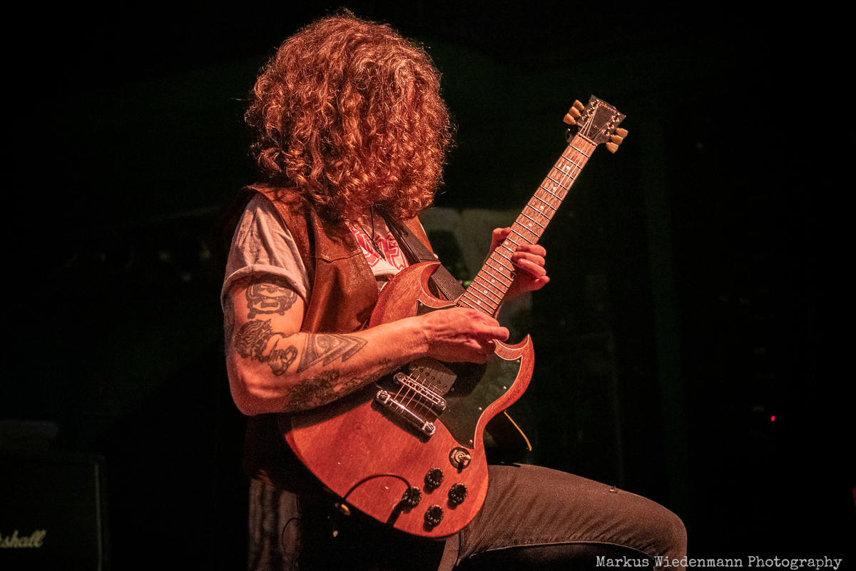 Satan’s Satyrs play a mixture of hard rock and metal with a punk attitude. The four-piece from the USA deliver an energetic show and present songs from their debut as well as from their current longplayer “After Dark”, which forms the middle of the show. The place is already pretty well filled when the guys enter the stage and everyone is waiting for some blasting music. What doesn’t play into the guys’ hands is the sound. The vocals are way in the back and can hardly be heard during the opener. You can assume that there is a guitar solo but you can’t really hear it and the drums are far too present. This mix makes the show not too exciting and there are more than a few guys who decide to pay a visit to the bar. Satan’s Satyrs would have deserved better circumstances fpr their set.