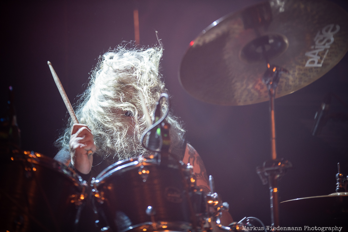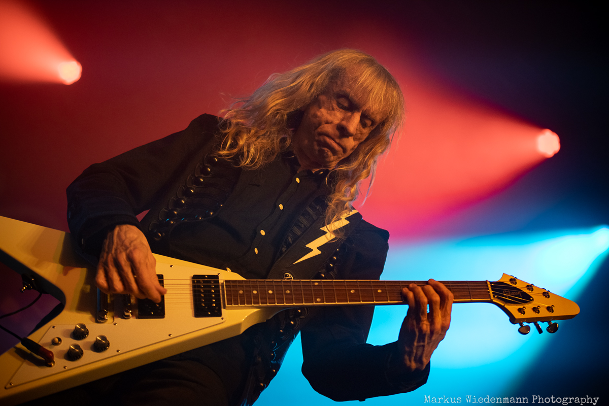 “Hell, Fire and Damnation” is the first song tonight and reflects the band’s latest effort. With “1066” and “Madame Guillotine” two additional songs from the latest studio album ignite the heavy metal spark at Docks. Also on the agenda tonight is the title track from the “Solid Balls of Rock” album, which was recorded in Hamburg with chanting fans show the power of this pounding metal anthem.