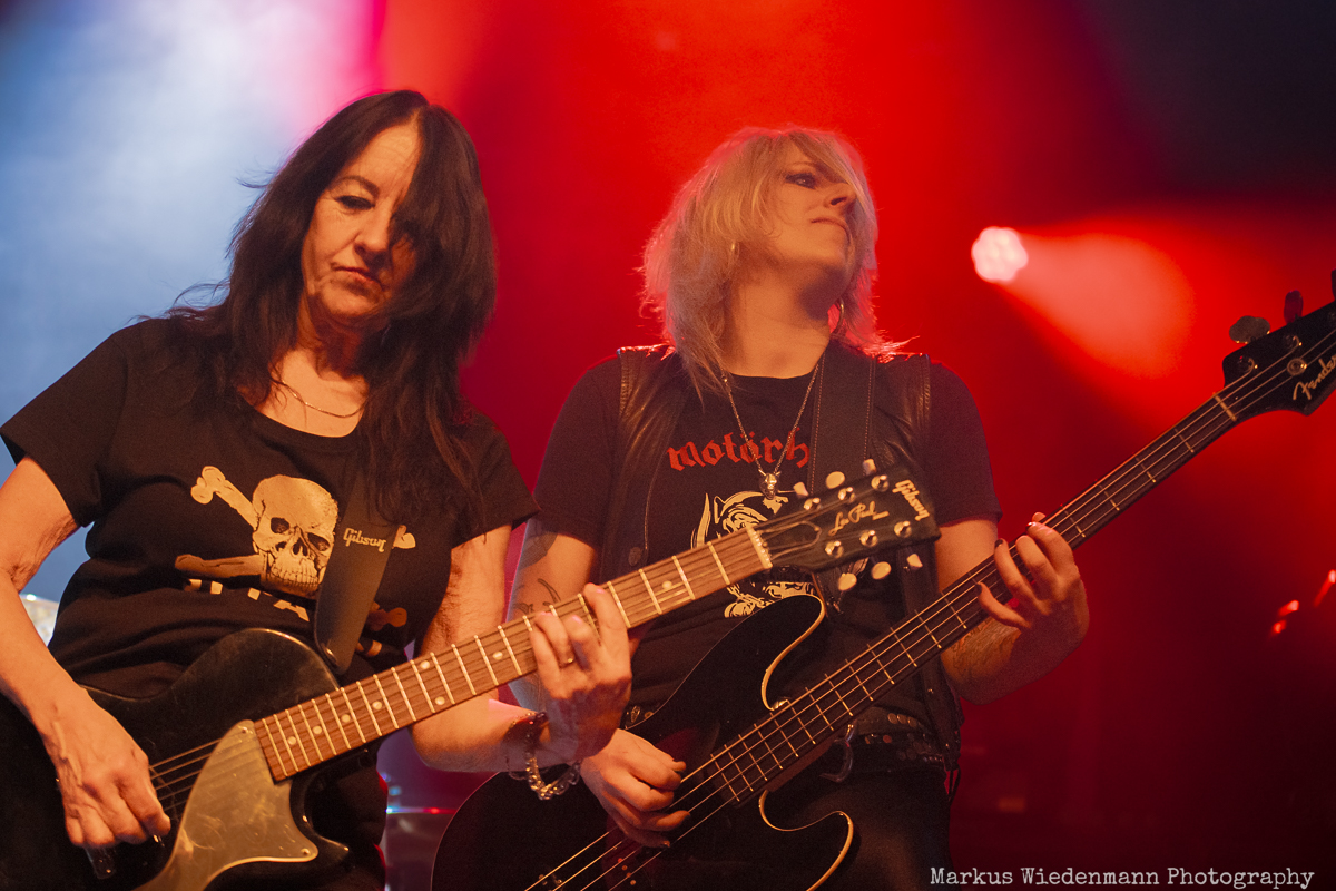 Another veteran band from the UK is next – Girlschool. Like Saxon, Girlschool started in 1978 and the original line up is represented by Kim McAuliffe. In addition to McAuliffe, Jackie Chambers and Olivia Airey, the newest member of Girlschool, are also on stage tonight. Lawrence Paterson, a veteran drummer, provides the heartbeat of tonight’s show, which kicks off with “Demolition Boys”. That Saxon fans are also Girlschool fans is obvious from the reaction of the crowd. The four-piece is warmly welcomed and has the fans on their side from the first song to the finale of the show – “Emergency”. Hits like “Hit and Run” are part of the show as well as “It Is What It Is” from the last studio album. What Girlschool deliver during their 45-minute set is down-to-earth hard rock, proving that rock’n’roll is a matter of heart and not age.