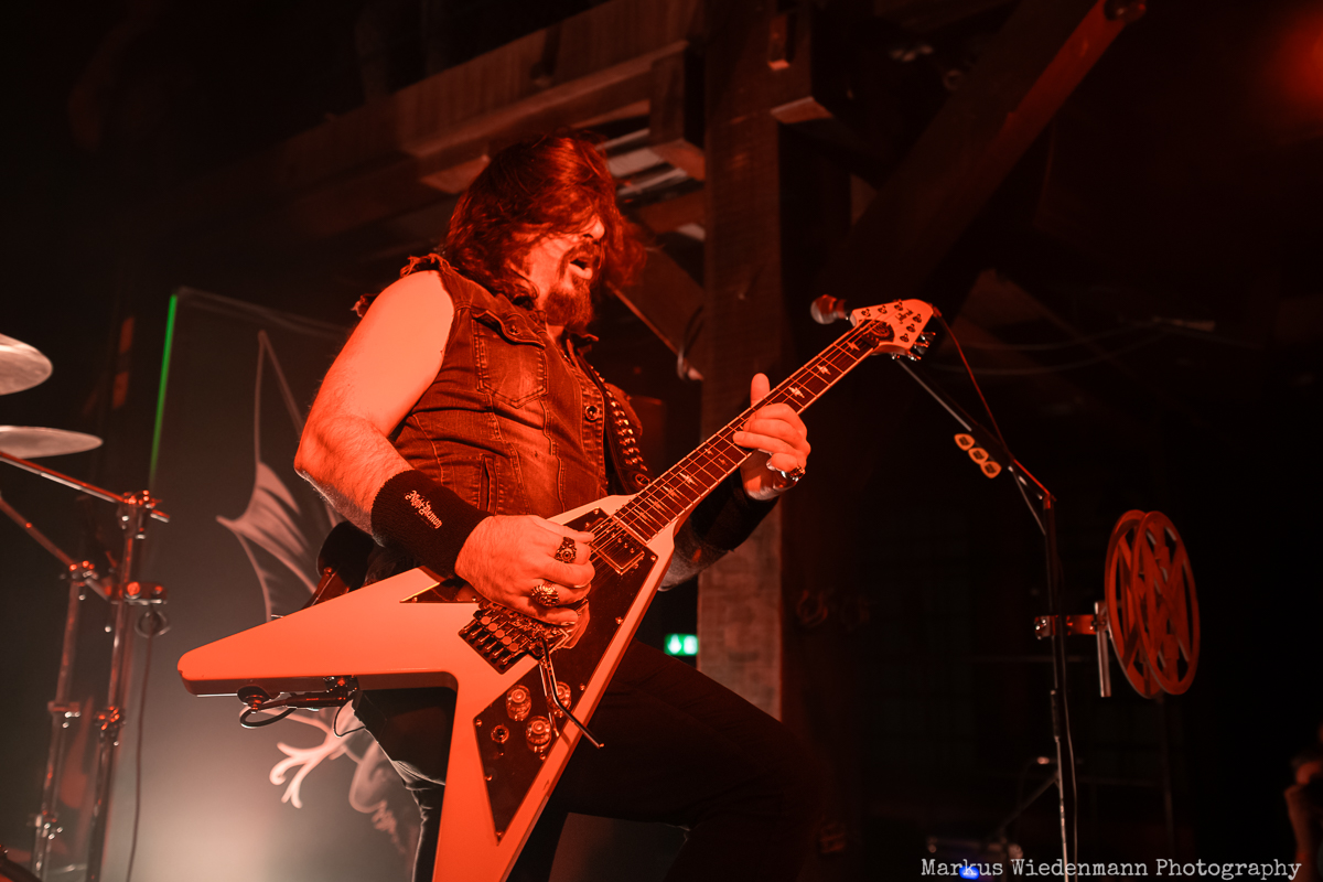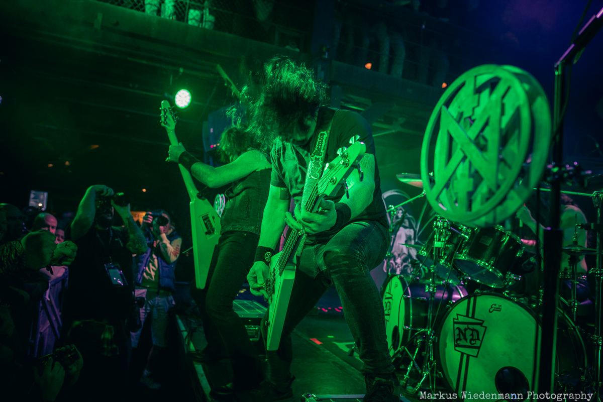 The core of tonight’s oldschool set is the EP and the full-length debut “The Warning”. The band will play both releases in their entirety and we start at 21:15 with “Queen of the Reich”. It is crazy to see how the first notes of the song turn the Fabrik into a metal madhouse. It is the starting point of a 90 minute metal blast that feels like a walk down memory lane. After seeing Saxon play the complete “Wheels of Steel” album a few days ago, tonight it is another veteran band that takes the fans back to the heyday of metal.