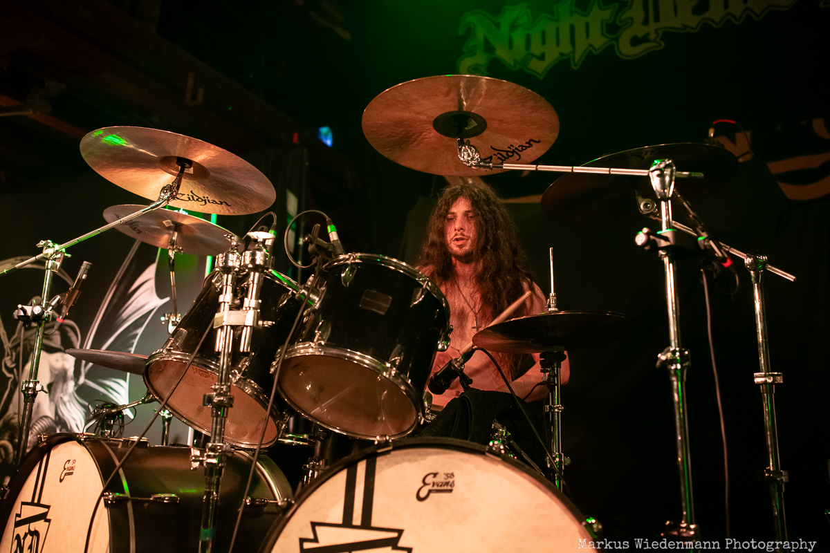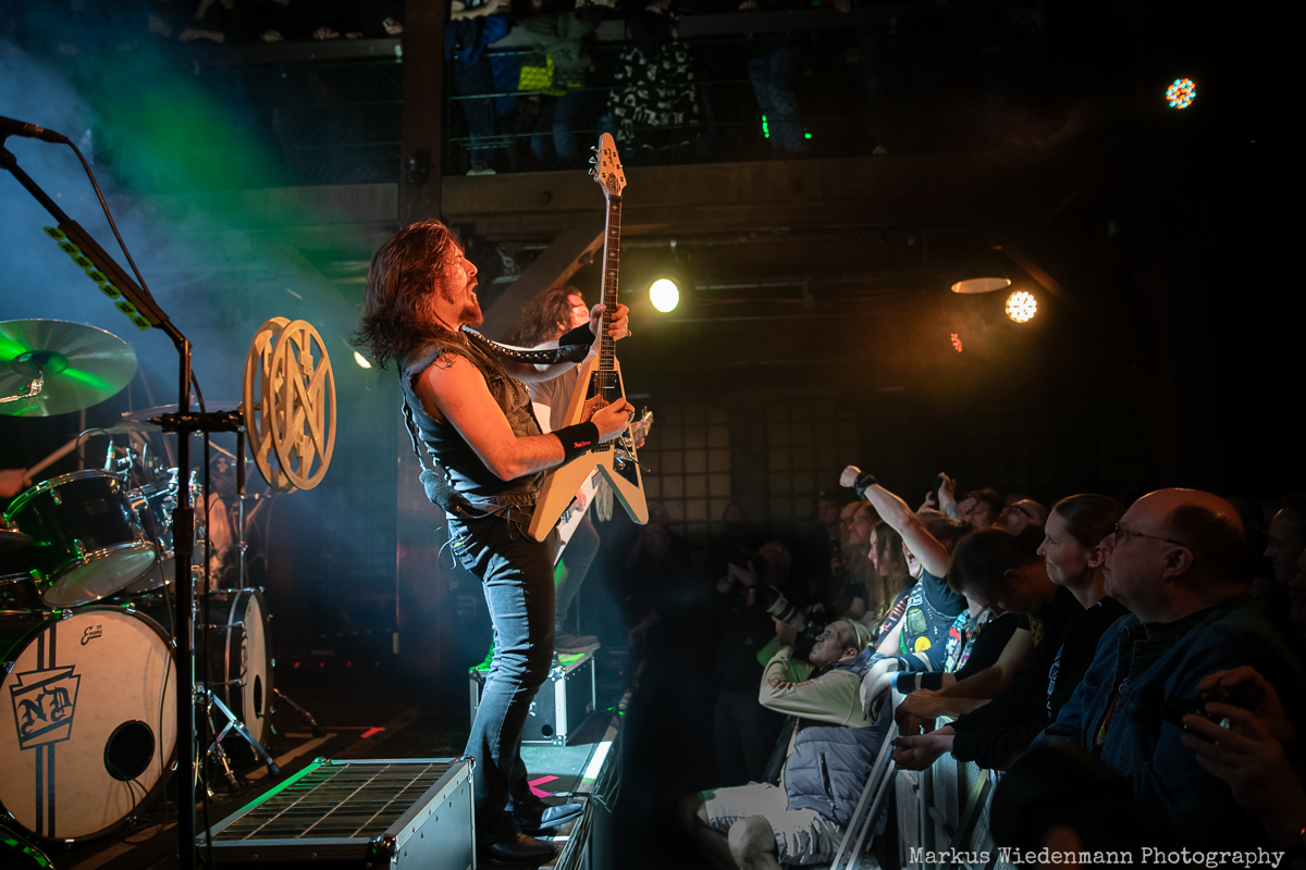 I am lucky enough to have followed both bands from the very beginning of their careers, and it is Night Demon who will start the metal feast tonight at 8:00 pm. Jarvis Leatherby and his bandmates open their metal show with the title track of their latest release “Outsider”. It is a thunderous start that is appreciated by the fans who have come not only to see the main act, but also to enjoy the straightforward heavy metal of Night Demon. Headbanging is the order of the day, on stage and in front of the stage. The trio from California chose a setlist that includes all relevant releases. In addition to the title track, three more songs from the 2023 album delight the headbangers tonight, while the end of this electrifying set is dedicated to some older songs. I remember when I got the very first Night Demon EP back in 2013 and it was a breathtaking moment listening to “The Chalice” and “Night Demon”. Today, 12 years later, the magic of these heavy metal blasts is still present and it is great to enjoy the band playing these monuments of steel live. By the way. The reaper is also part of tonights show and appears during “The Chalice”, but this time with bare midriff and swimiing trunks as it is the final show of the tour. And to enjoy all the excitement in the room, Jarvis and Armand take a short tour through the crowd, still playing “Night Demon”. This what ‘being connected to fans’ really means.