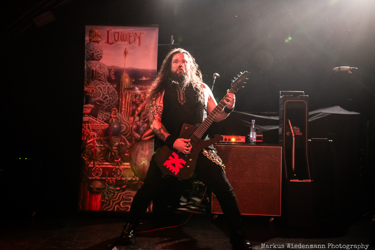 The opening act this evening is a band from the UK. I can’t say that I’m very familiar with Lowen‘s music, and the first thing you see is the small table next to the microphone with a hatchet, a book and other altar-like objects. That gives you an idea of what to expect. Lowen have found their own musical identity by combining the middle-eastern heritage of vocalist Nina Saeidi with heavy riffs that sometimes lean more towards doom metal. Unfortunately, their 30-minute set isn’t one of the best I’ve ever seen or heard. There is a lot of drama on stage that reminds more of a mystic ritual than a pure metal show.