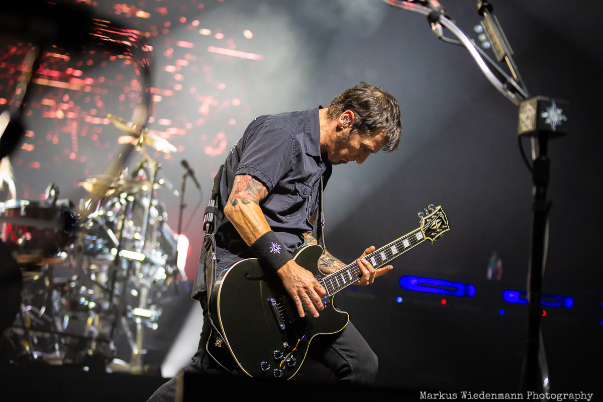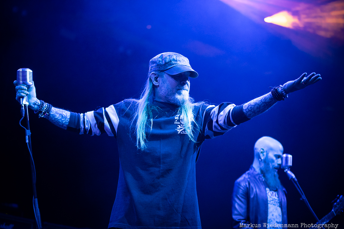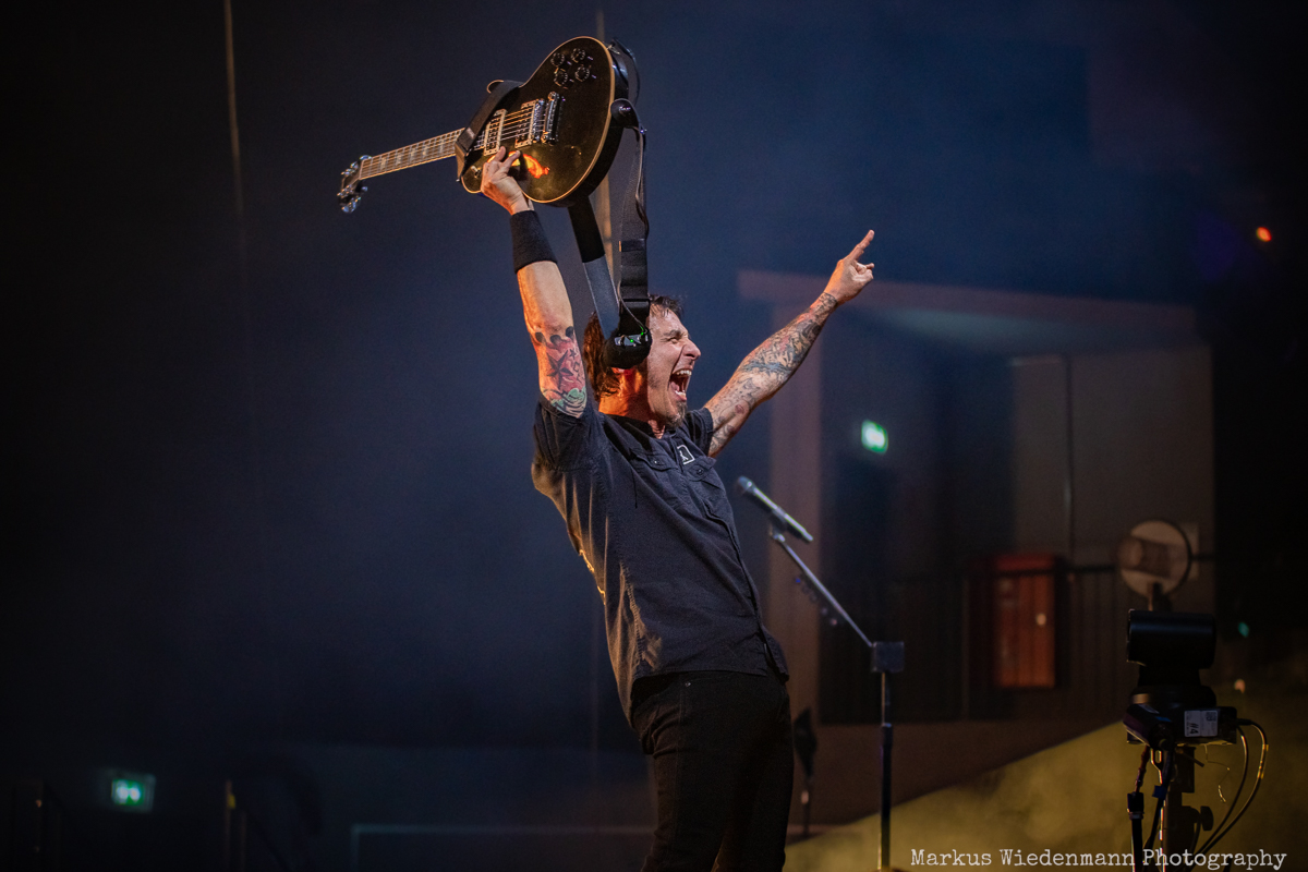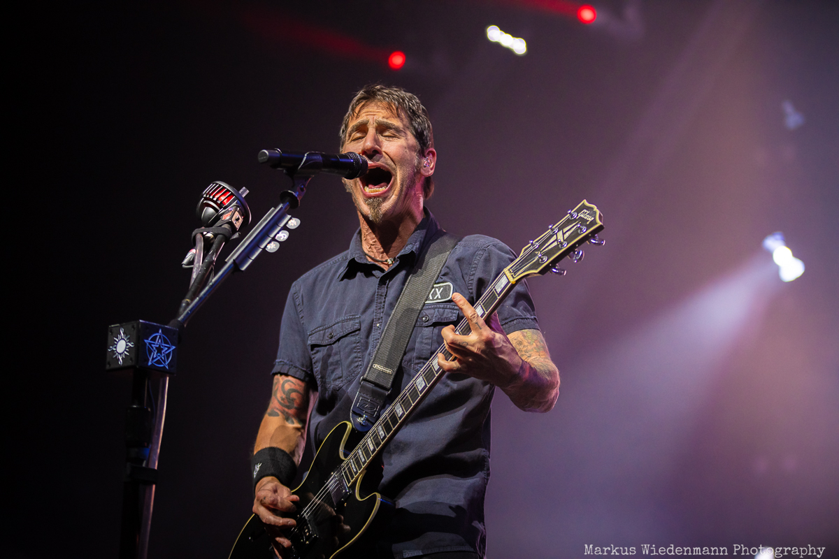 Now it is time for the headliner – Godsmack. Sully Erna and his bandmates are back in Germany after playing a few shows back in 2022, and there’s a slightly different line-up on stage tonight. Sully Erna and Robbie Merrill are still the driving forces of the band, but guitarist Tony Rombola and drummer Shannon Larkin have left Godsmack and some replacements were needed. Evanescence drummer Will Hunt joins Godsmack on this tour as well as guitarist Sam Bam Koltrun and the guys rock.