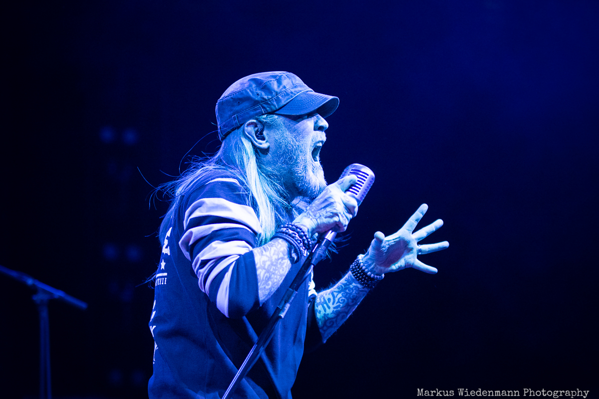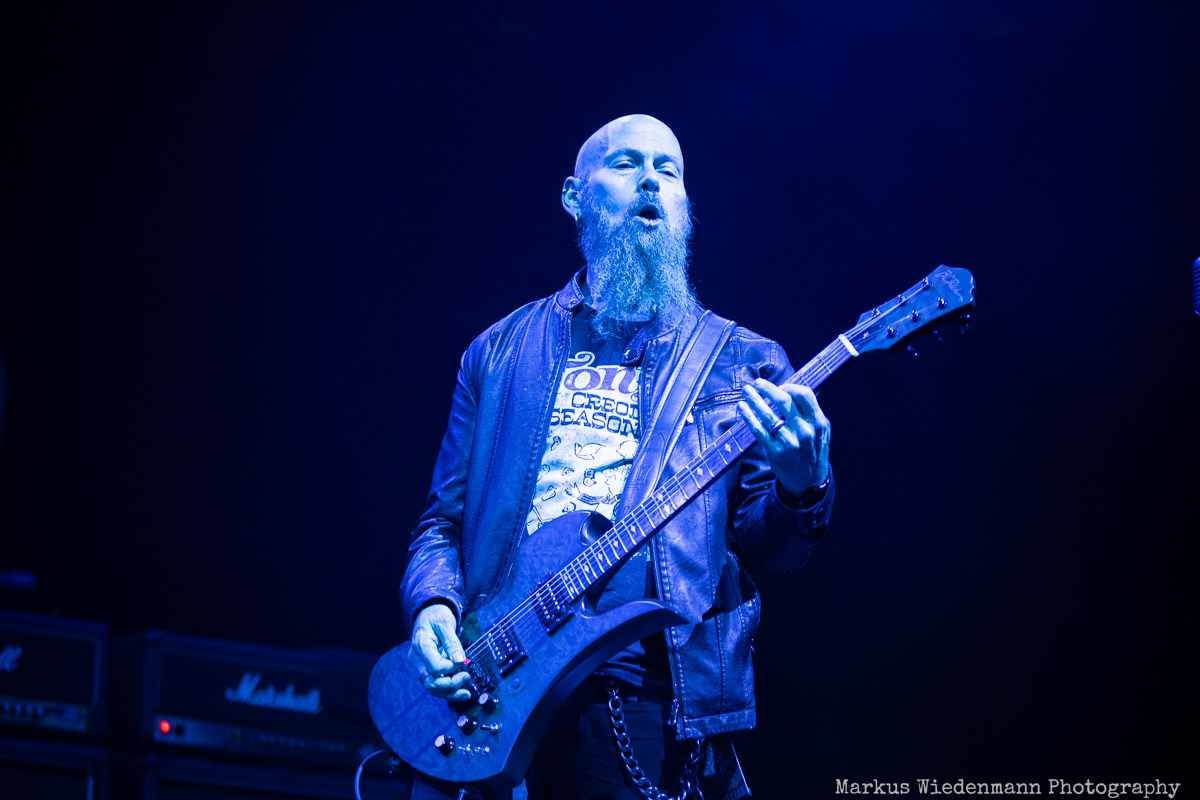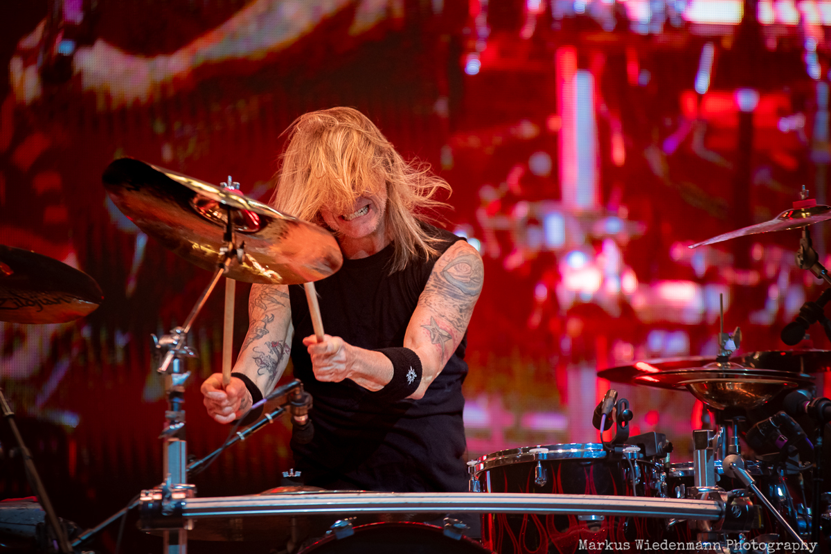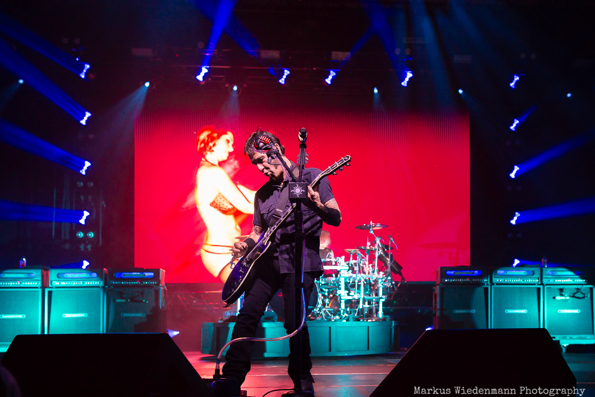 Now it is time for the headliner – Godsmack. Sully Erna and his bandmates are back in Germany after playing a few shows back in 2022, and there’s a slightly different line-up on stage tonight. Sully Erna and Robbie Merrill are still the driving forces of the band, but guitarist Tony Rombola and drummer Shannon Larkin have left Godsmack and some replacements were needed. Evanescence drummer Will Hunt joins Godsmack on this tour as well as guitarist Sam Bam Koltrun and the guys rock.