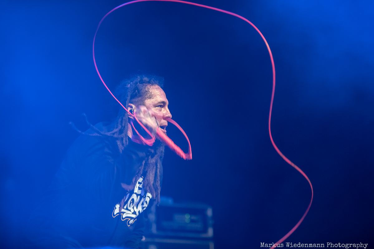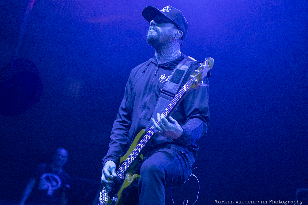 Unlike Drowning Pool, the four-piece build their set on a well-balanced mixture of old and new. The “Satellite” release and most recent studio album, “Veritas,” are the foundation of tonight’s show, and fans love them all. P.O.D. bring a lot of energy to the stage and the fans appreciate the effort. We are in for 45 minutes of jumping around, flying dreadlocks and even a circle pit. The latter is quite big, initiated by the band. This is the moment when the people go wild and the first crowd surfers start their journey towards the front of the hall.