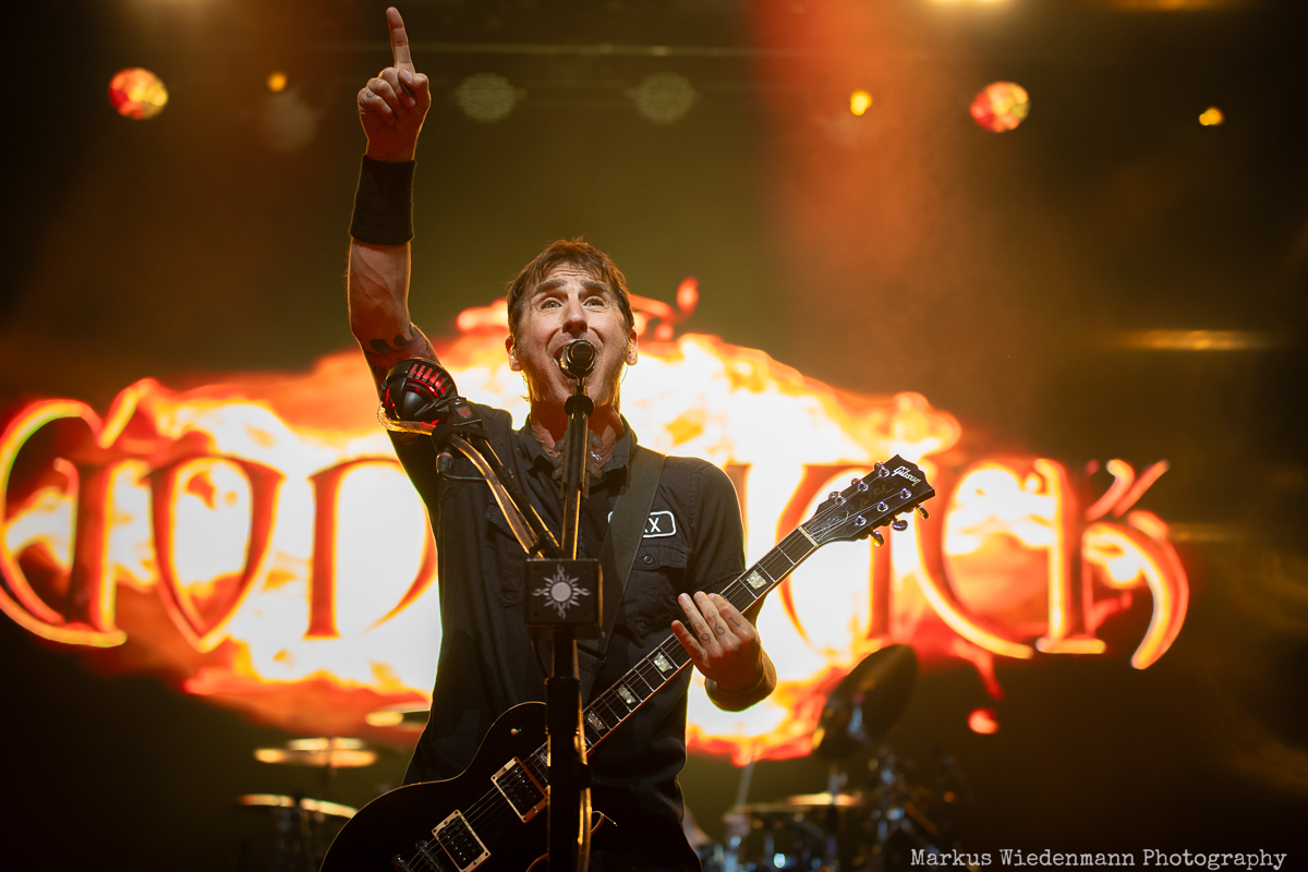 Now it is time for the headliner – Godsmack. Sully Erna and his bandmates are back in Germany after playing a few shows back in 2022, and there’s a slightly different line-up on stage tonight. Sully Erna and Robbie Merrill are still the driving forces of the band, but guitarist Tony Rombola and drummer Shannon Larkin have left Godsmack and some replacements were needed. Evanescence drummer Will Hunt joins Godsmack on this tour as well as guitarist Sam Bam Koltrun and the guys rock.