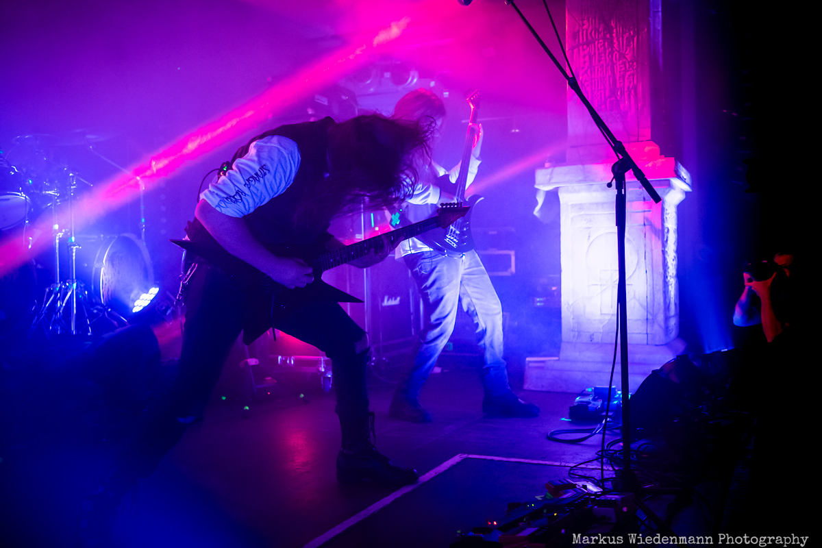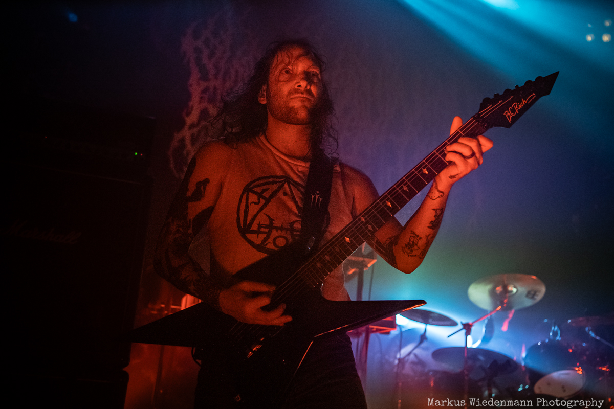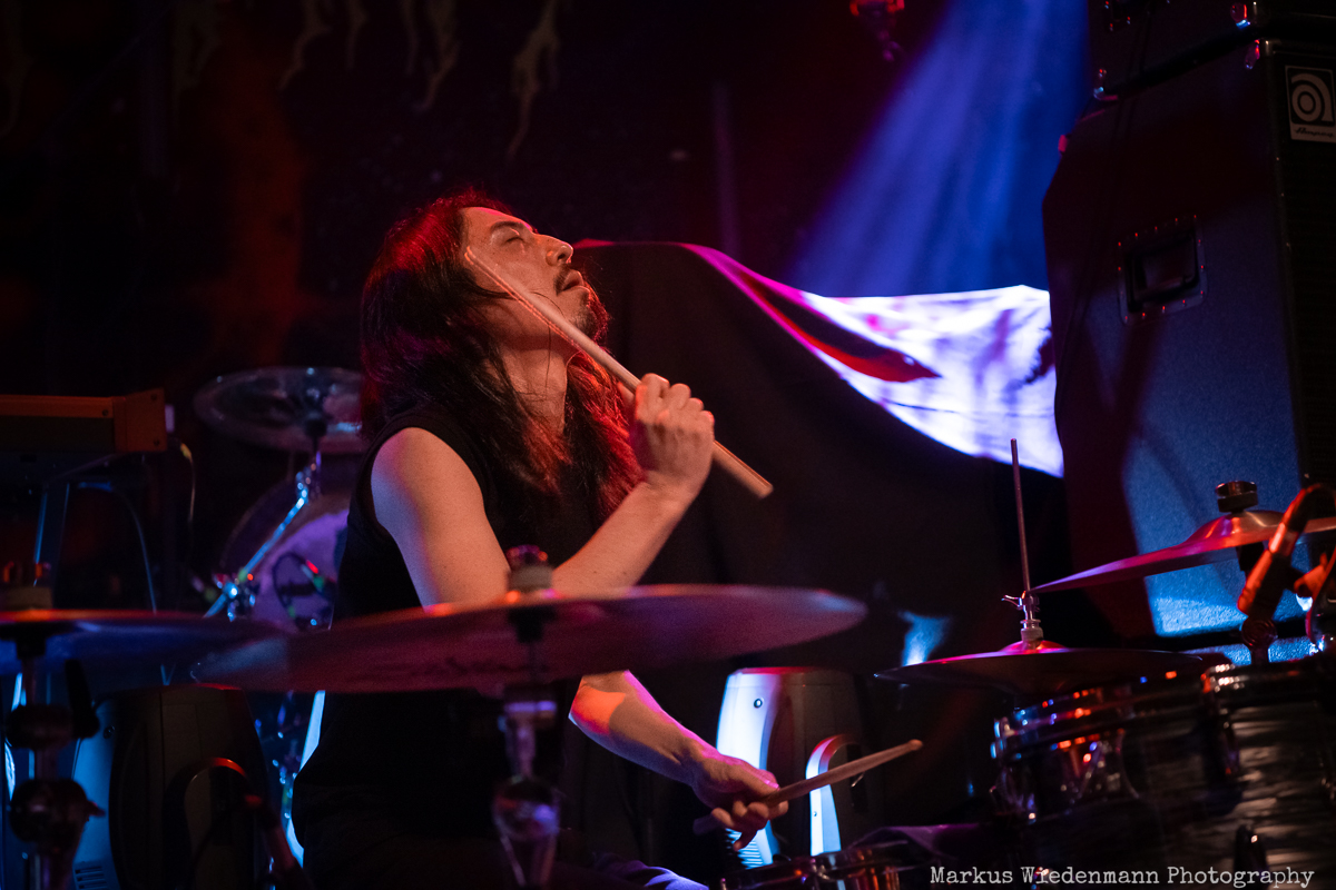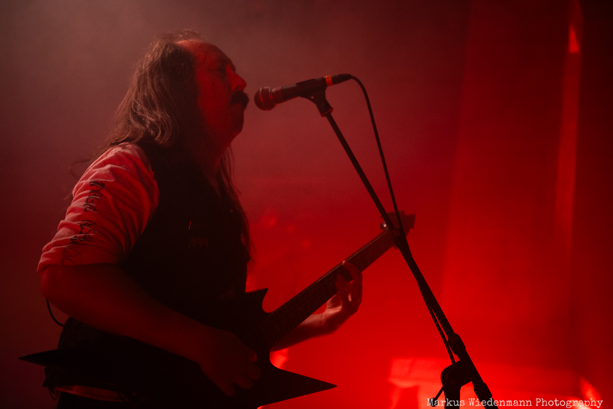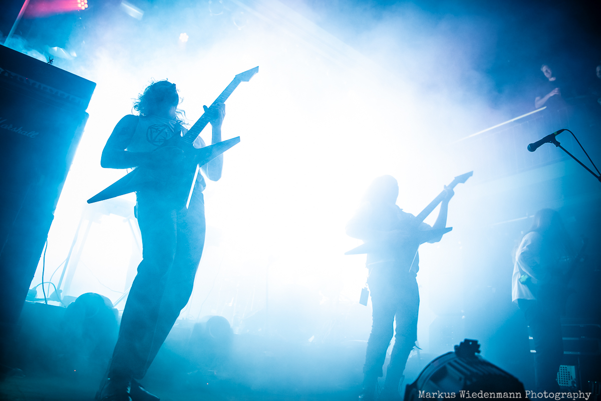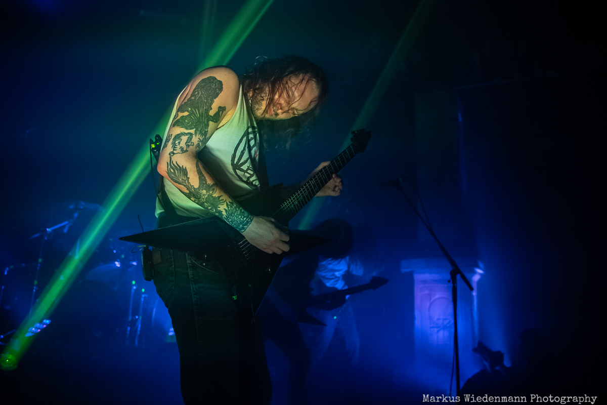 Blood Incantation build their show around two songs. It is the A-side and the B-side of the current album “Absolute Elsewhere”, which are played in chronological order. It is the massive blasts during the three chapters of “The Stargate” that reveal all the heaviness and aggressiveness of the death metal outbursts. The creative metal professors from Denver are unleashing a metal inferno. Already when entering the venue you were reminded that it will be loud … and Blood Incantation play loud. No doubt, heavy metal has to be experienced loudly and at the same time the filigree and the details of Blood Incantation’s music are a little bit overruled by the roaring sound.