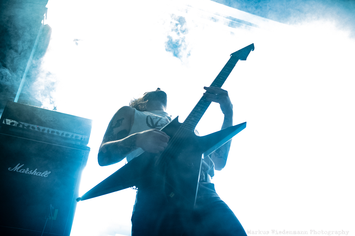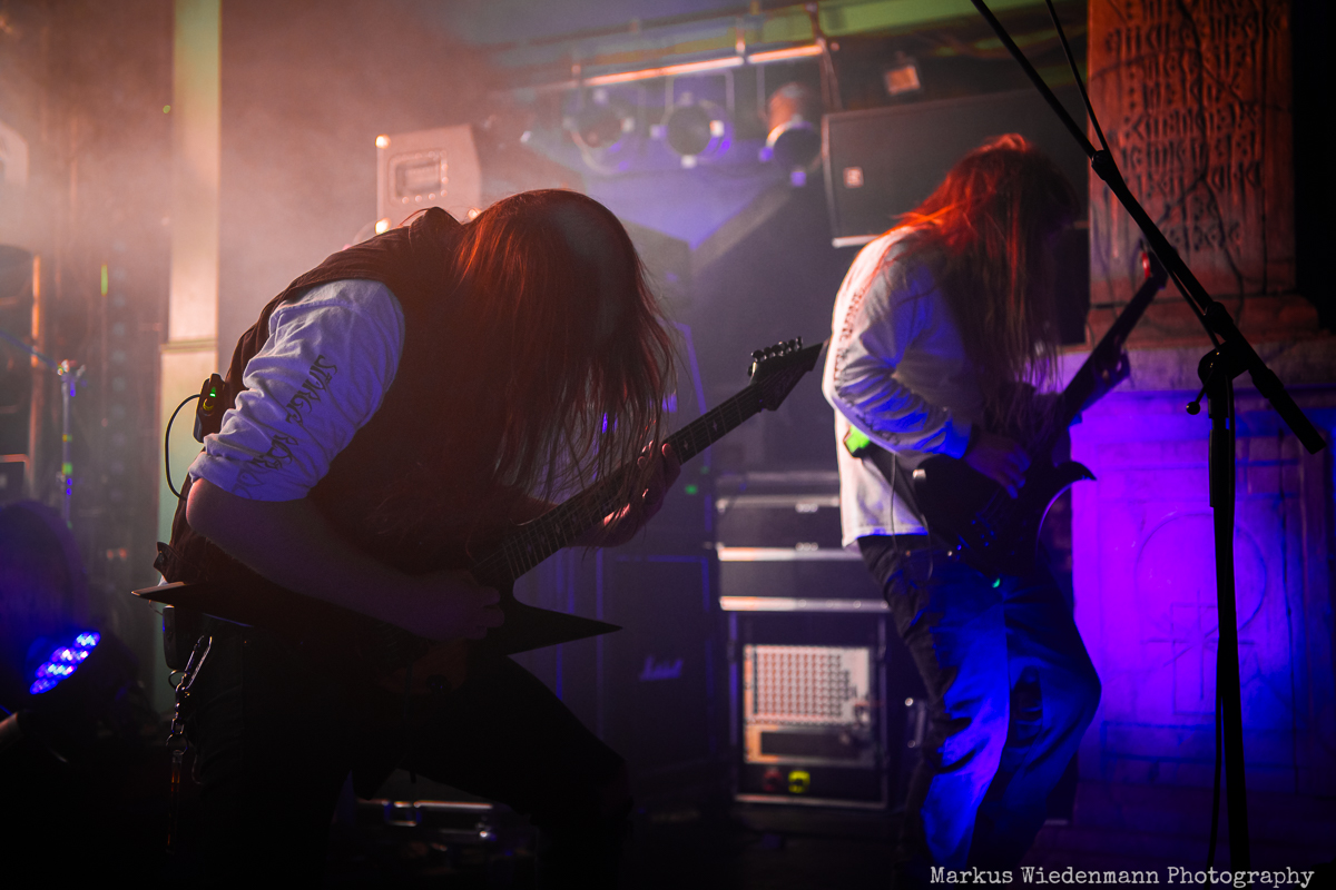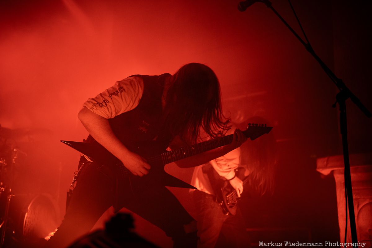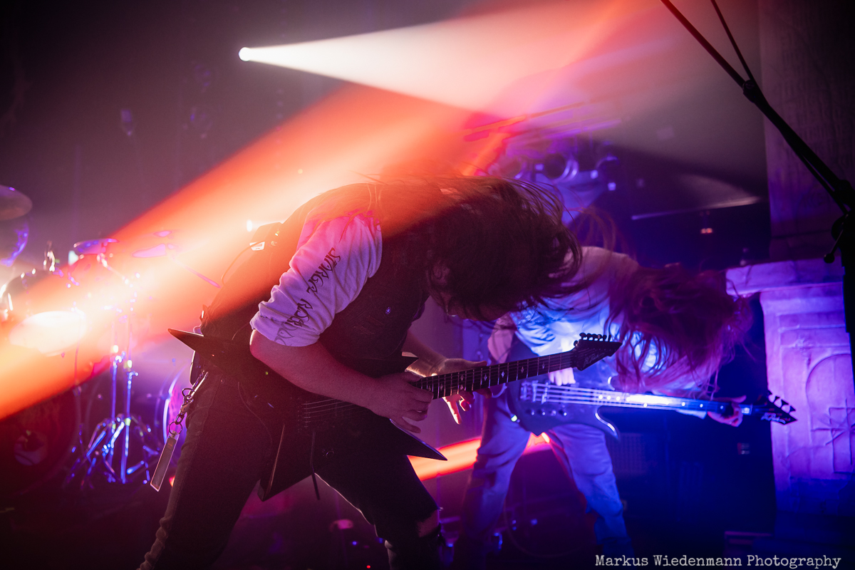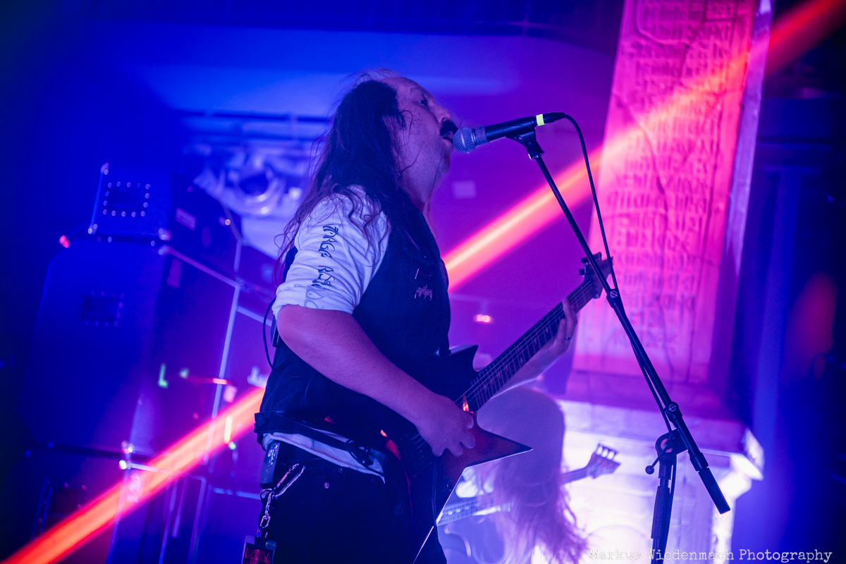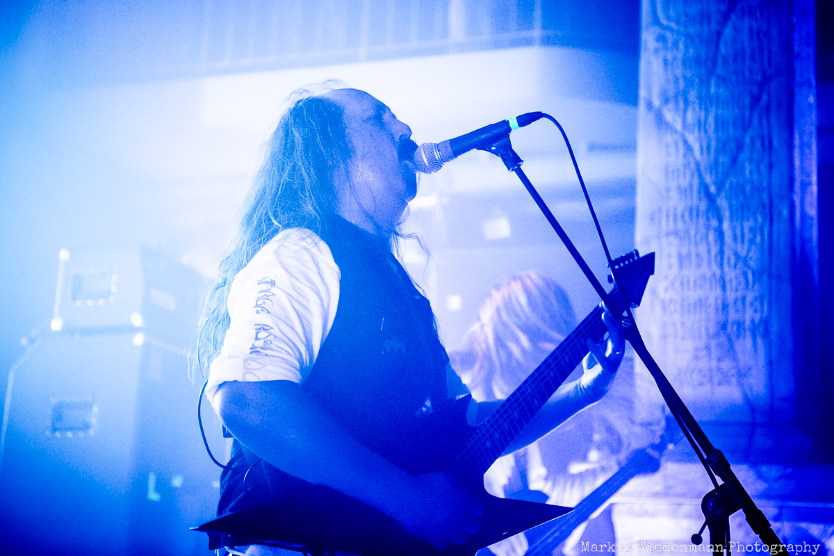 Blood Incantation build their show around two songs. It is the A-side and the B-side of the current album “Absolute Elsewhere”, which are played in chronological order. It is the massive blasts during the three chapters of “The Stargate” that reveal all the heaviness and aggressiveness of the death metal outbursts. The creative metal professors from Denver are unleashing a metal inferno. Already when entering the venue you were reminded that it will be loud … and Blood Incantation play loud. No doubt, heavy metal has to be experienced loudly and at the same time the filigree and the details of Blood Incantation’s music are a little bit overruled by the roaring sound.