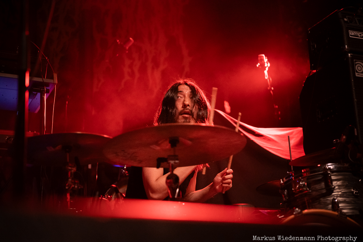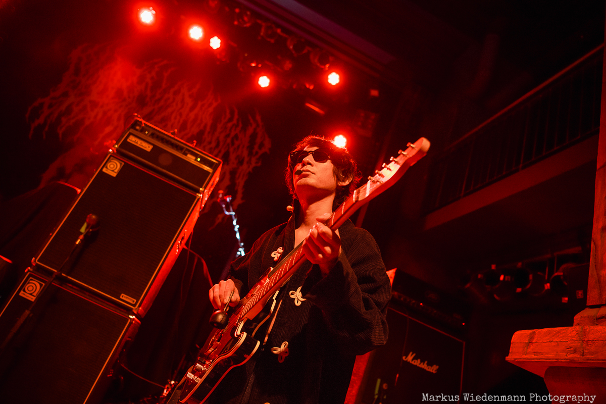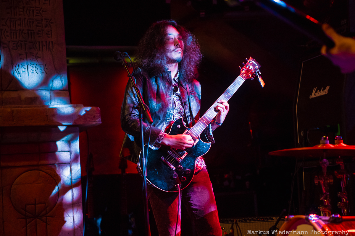 Tonight Minami Deutsch start their show at 8:00 pm and it is remarkable that quite some fans have come to see the quartet. The room is well crowded and already after the first song there is more than just friendly applause that fills the Gruenspan. Minami Deutsch’s sound is a fusion of psychedelic rock with a cosmic feel and the mentioned krautrock inspiration that shimmers through during these 40 minutes. The guys are masters of repetition, which leads to an almost hypnotic musical experience for everyone. Style-wise different from Blood Incantation it is the musical finesse and the creative flow that both bands have in common and what the four Japanese musicians present is powerful and impressive. You get the feeling of joining the band during a jam session in their rehearsal room, with endless solo parts and not too much talking. It’s the music that does the job and much more than a “Dankeschön” at the end is not what you can expect. Nevertheless, the fans came to listen to music and they got a full dose of mesmerizing rock music, paving the way for the main act. A big round of applause resounds in the room as the band leaves the stage and I guess they have some new fans in Hamburg after this set.