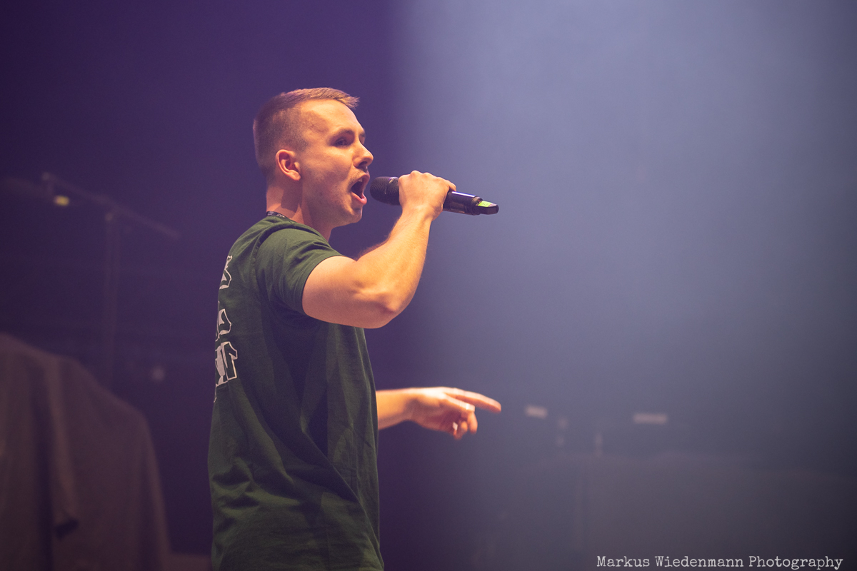 The venue fills rather quickly, and it was at 8 p.m. when the support act takes the stage. As usual, it is Feine Sahne Fischfilet frontman Monschi who announces the band, and it is a young band. The guys are called Attic 109, and they are into hip-hop. What might not make sense at first becomes clearer when you know that the band has a similar starting point as the main act. It’s kids from the countryside who are just enjoying making music and living their passion.