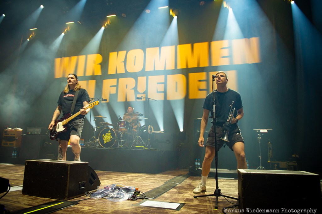 With “Alles glänzt,” the regular set comes to an end, but there is still plenty more to come. The encore includes “Lass uns gehen,” “Haut an Haut,” and a surprise. Max Bobzin put the trumpet aside for “Without Me,” a song by Eminem that is very well received by the crowd. For me, at least, it’s an unexpected treat, adding to the great spirit in the room and it underlines the idea of uniting instead of dividing. “Manchmal finde ich dich scheiße” ends the first encore, and fans sing along to the chorus for several minutes before the band returns for an extra round. “Komplett am Arsch” is the great finale of tonight’s show, and it is also bit like everybody feels after the two hours of great punk rock.