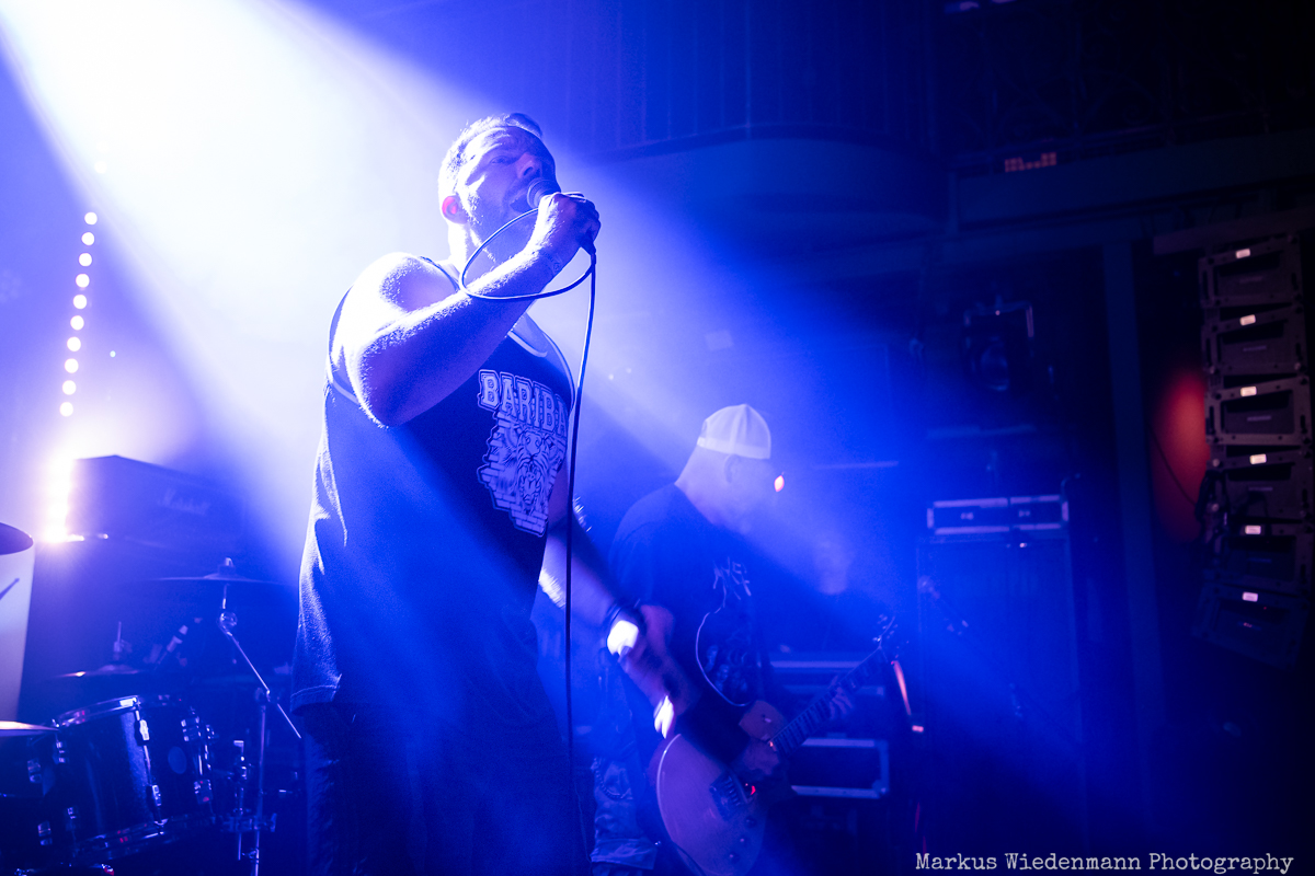 It is the middle of June and the warm season has arrived in Hamburg when the two groups stopped at the Hansestadt, putting on a show at Gruenspan. An opener was added to the evening’s line-up at the last minute. Hailing from Walsrode, Germany, Ash Return was announced just a few days prior to the concert, and the five-piece band is supposed to get everybody into the right mood. It is 19:00 sharp when the guys take the stage with a song from their debut album. ‘One’ is the title of a hard-hitting hardcore track combining roaring shouts and plenty of groove. It is a warm summer’s night in Hamburg, and some fans are still enjoying the laid-back vibe outdoors, but the powerful hardcore of Ash Return is drawing more and more people into the room.