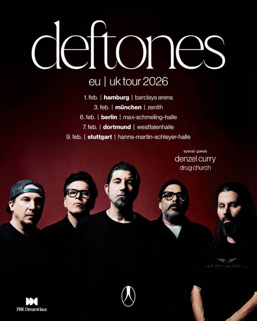 Deftones will embark on a European tour in early 2026, including five concerts in Germany. Denzel Curry and Drug Church have already been confirmed as special guests.