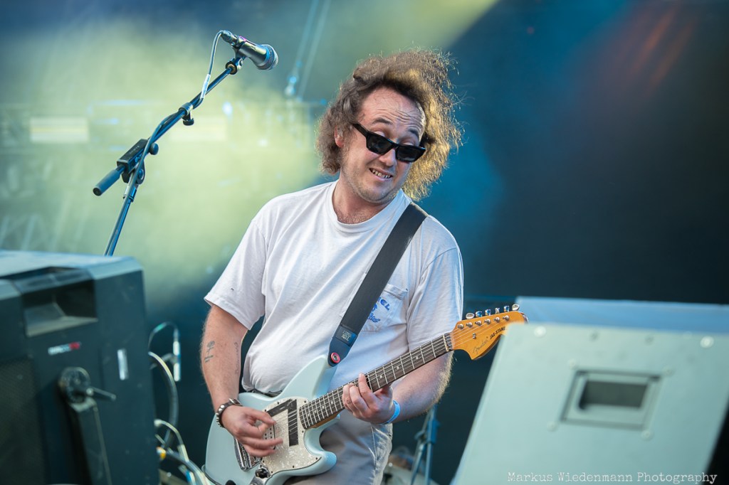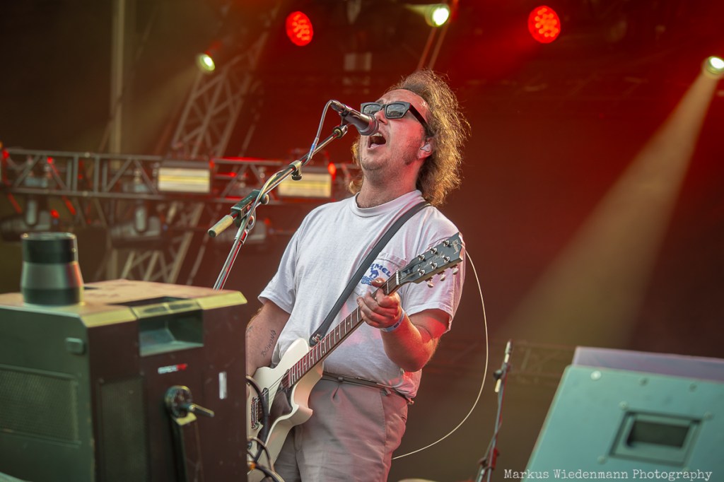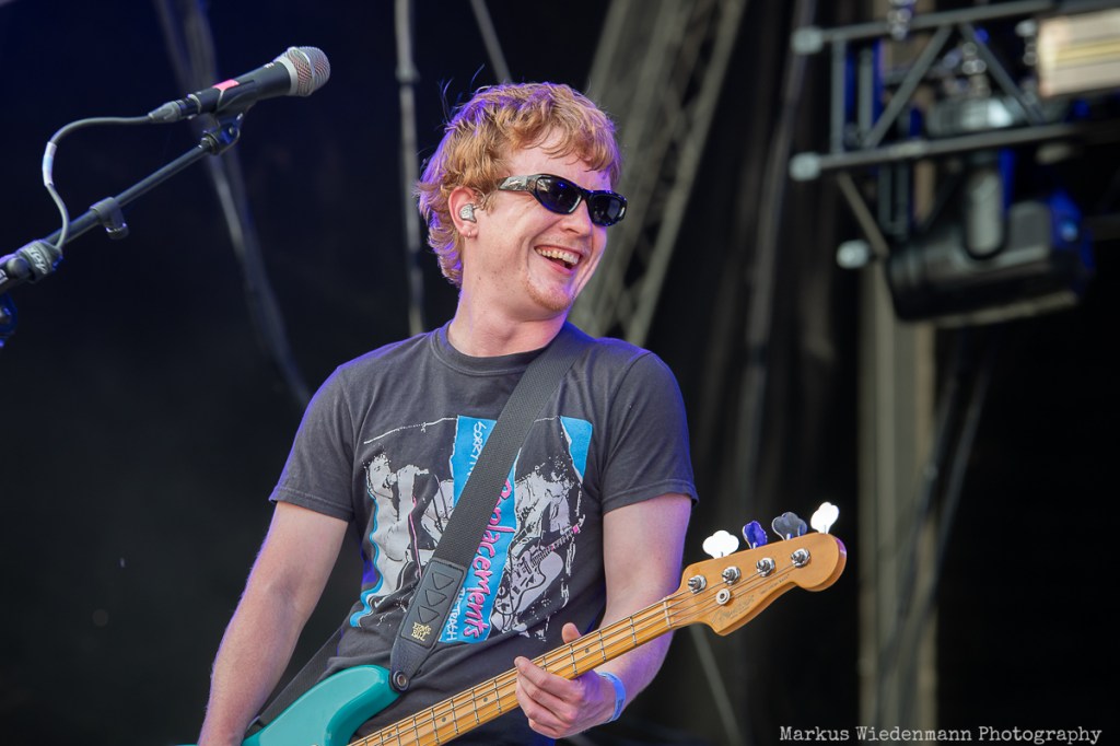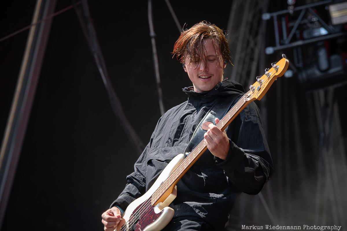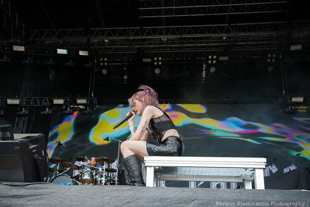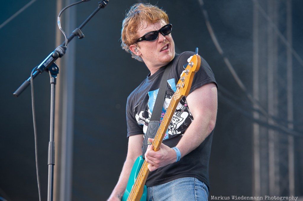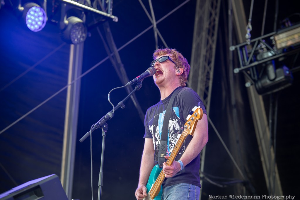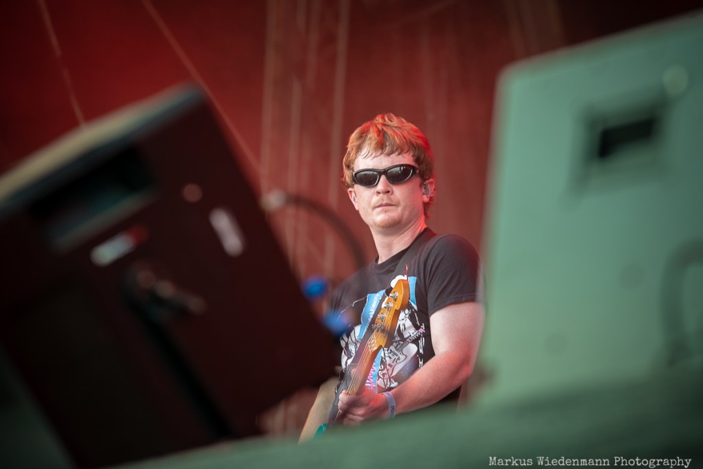 Next on stage is Future Palace from Berlin. The Hansestadt should evoke good memories for the band, as they played one of their first shows there, and today, the trio gives everything they’ve got. Future Palace’s music is characterized by a throbbing fusion of synth-pop-inspired melodies and harsh post-core outbursts. In contrast, the lyrics are very personal, addressing depression and inner conflicts with singer Maria Lessing speaking about them twice during the set. The heavy aspect of their music, combined with the bright sunlight and party vibe, might make the Future Palace show a good one, but the real connection between the band and the crowd doesn’t grow much today. However, not even a small scratch on Lessing’s shin could stop the band from putting on a passionate show, and the fans in the front row are enjoying what they’re offered.