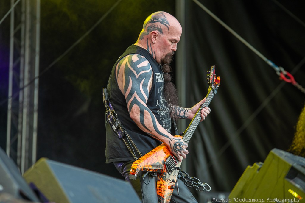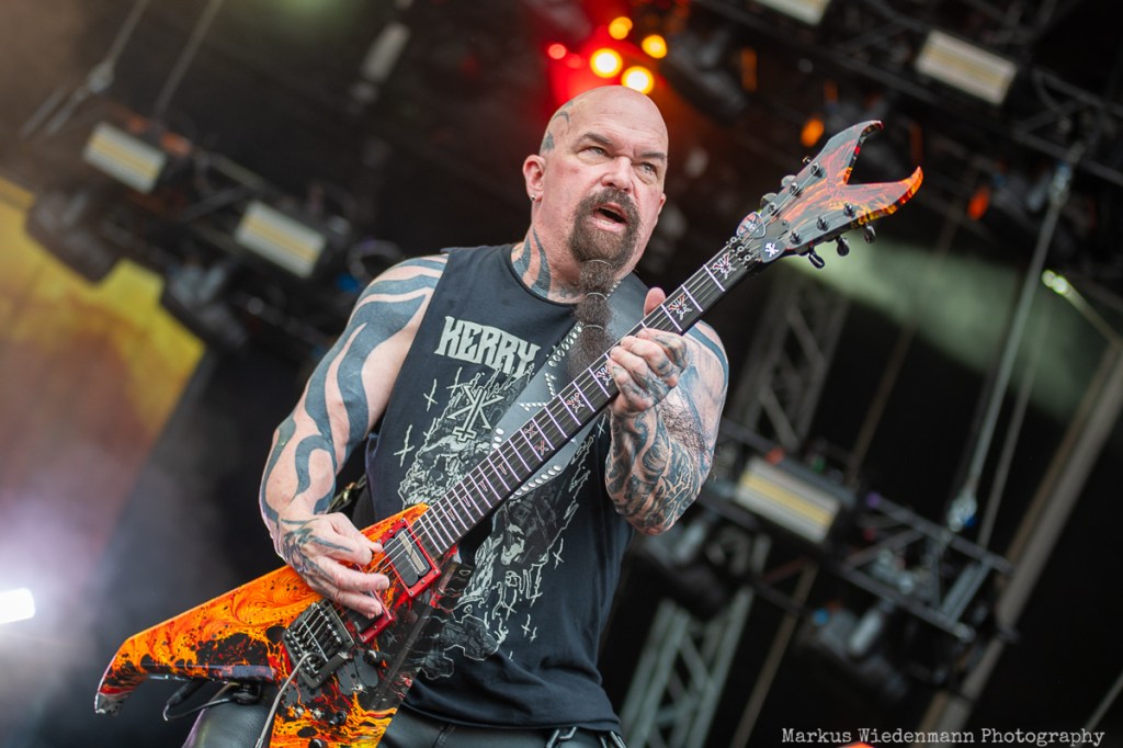 After such a colorful show, things will get darker and heavier. Next on the agenda is Slayer founding member Kerry King, who will perform some raw and harsh thrash metal. Although the backdrop says “Kerry King,” we are actually looking at a kind of Bay Area all-star band. The lineup includes Death Angel frontman Mark Osegueda, Phil Demmel (Vio-lence), Kyle Sanders (Hellyeah), and former Slayer drummer Paul Bostaph—all established metal greats.