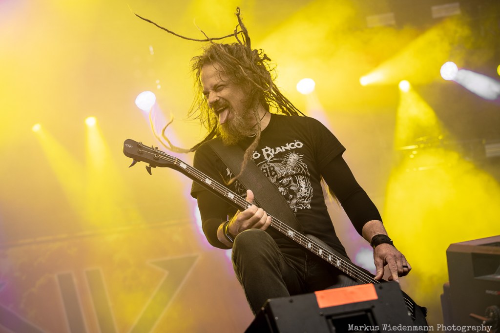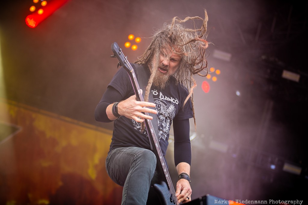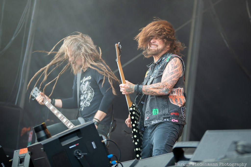 With The Chats, this year’s lineup also includes punk rock. The Chats traveled from Australia to Hamburg to perform an energetic show. The trio, led by frontman Eamon Sandwith — whose vocals reminds me partly of the late Bollock Brothers frontman Jock McDonald — delivers raw and fierce punk rock. Unmistakably influenced by UK punk rock from the ’70s, The Chats have a lot of kick-ass songs in their repertoire. The only thing missing is the crowd’s enthusiasm. Some folks in the front row enjoy themselves, but most people are looking forward to the metal bands. The Chats’ music is better suited to a smoke-filled, beer-soaked club where it can reach its full potential. Nevertheless, The Chats is a talented punk rock band with anarchic music and the right attitude.