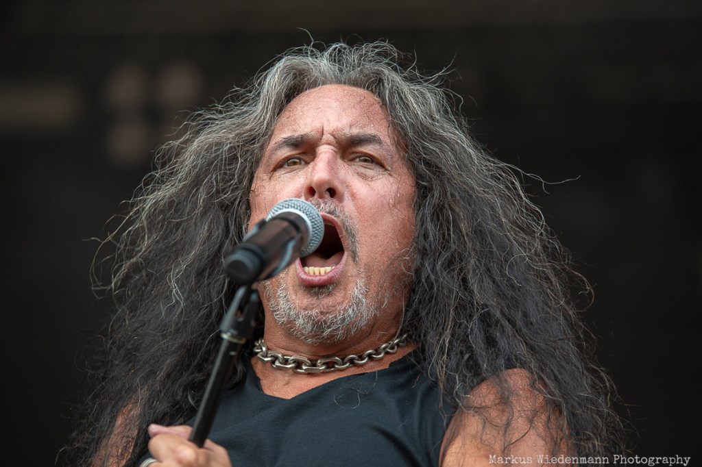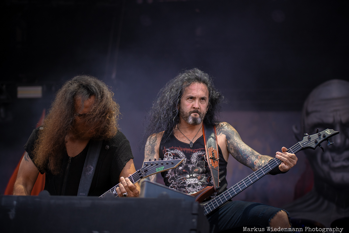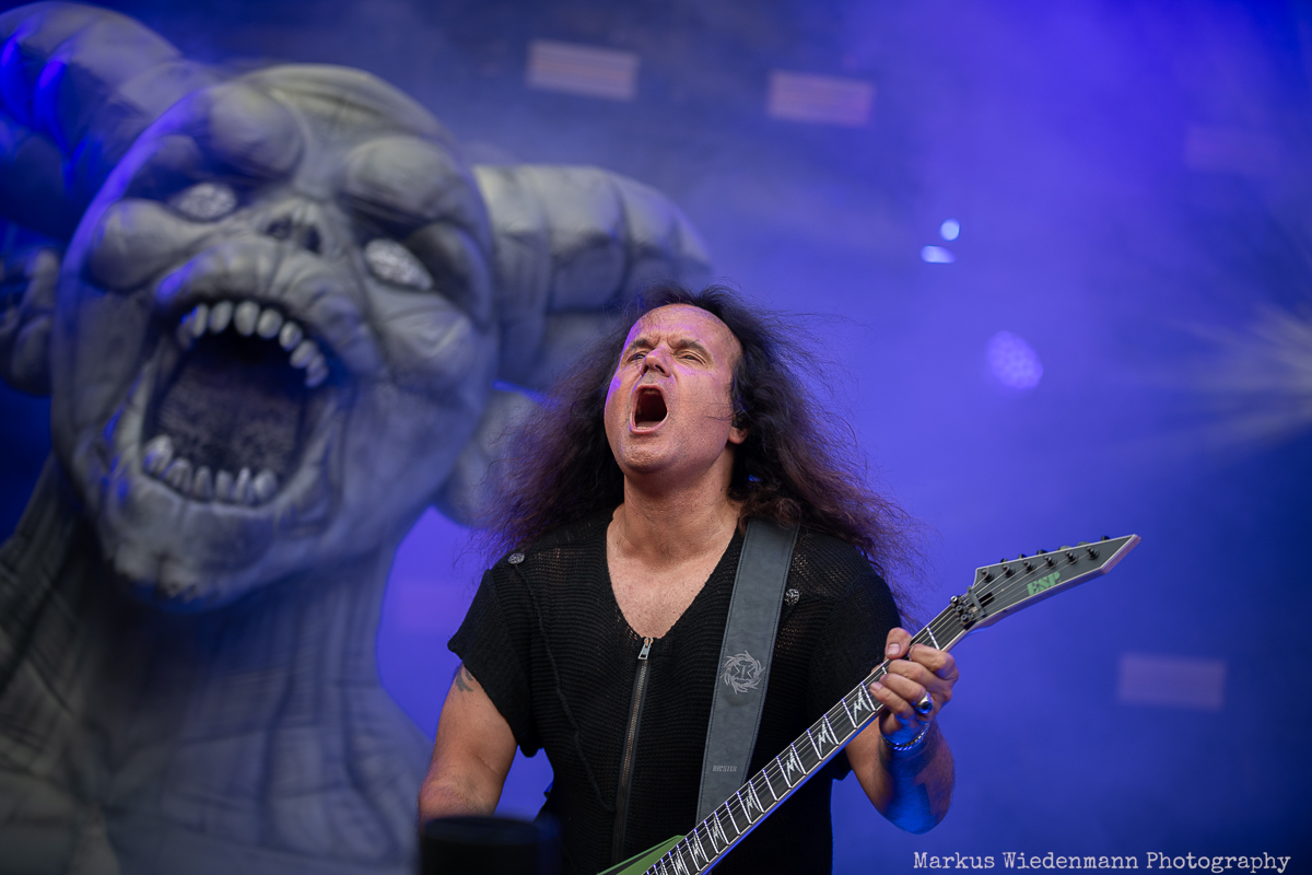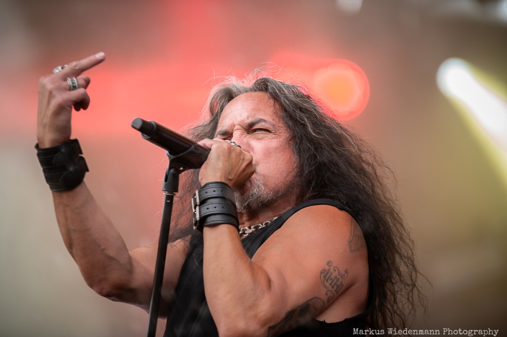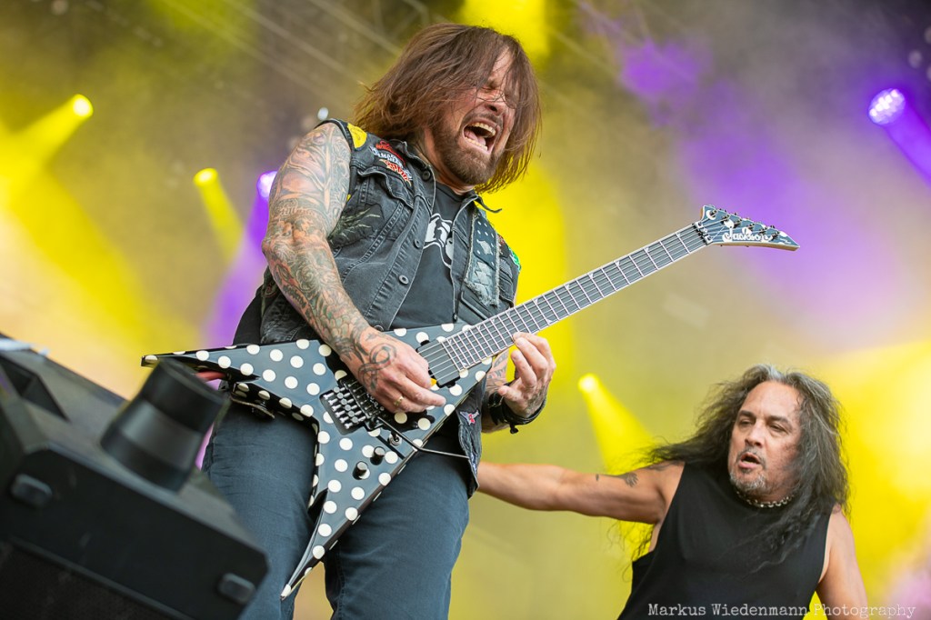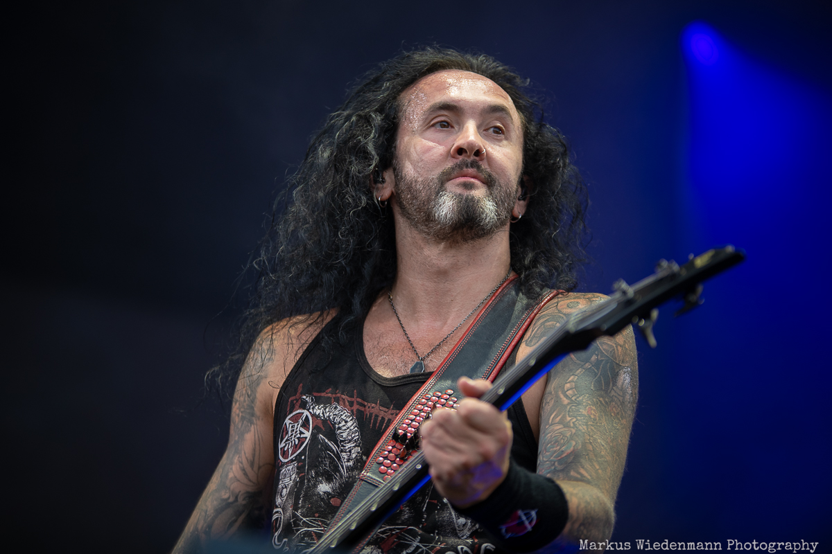 Kerry King prepared the ground for Kreator, who will be performing next. Seeing a Kreator show is like visiting good old friends. You know what to expect, and it’s always a great time. This includes everything, from the huge Kreator curtain covering the stage during the rebuild to the stage design and the songs. Consistency comes with a Kreator show, and today is no exception.