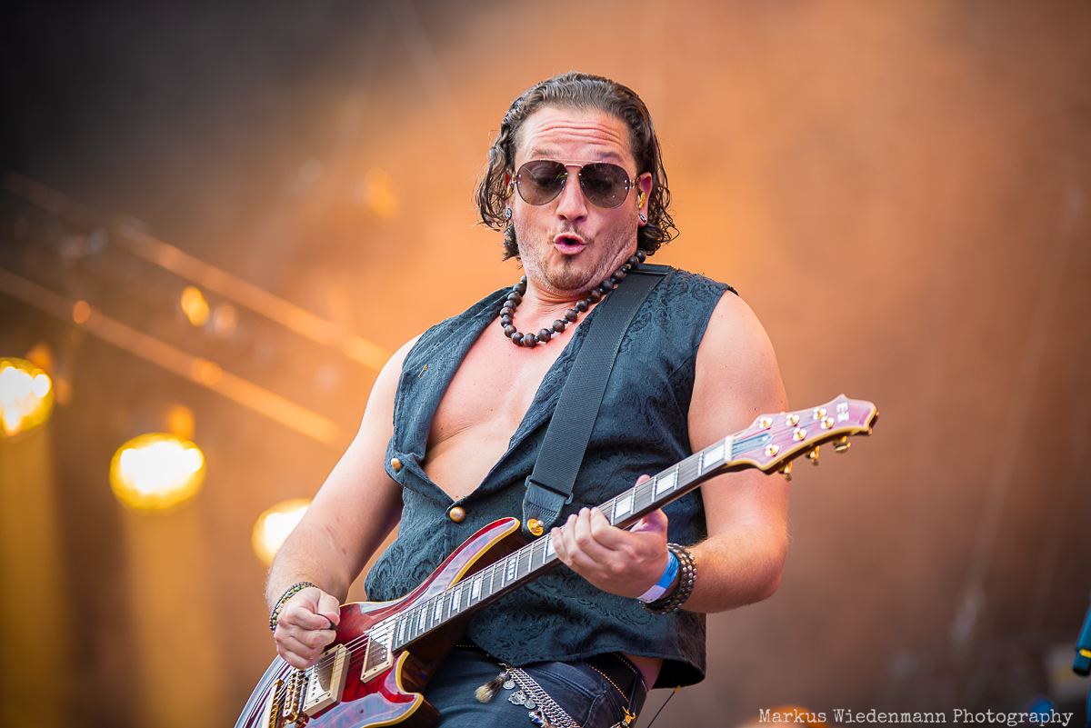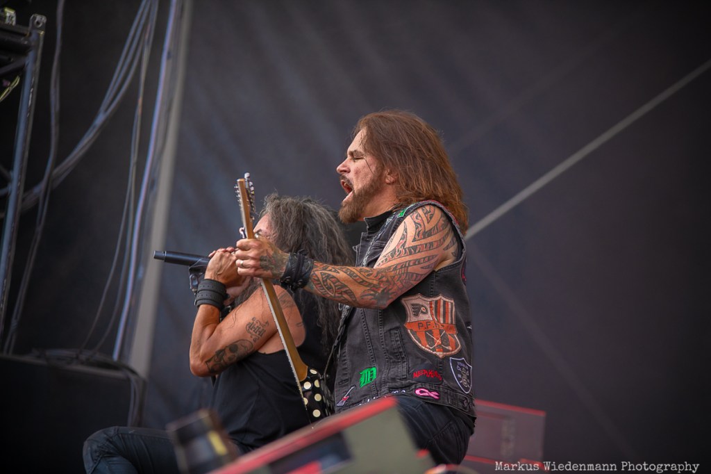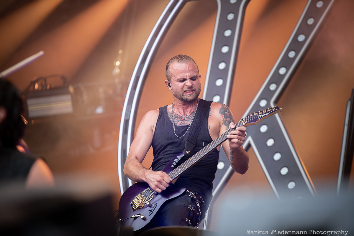 Not only can Kissin’ Dynamite count on excellent songs — from old to new — but they also have a great stage presence. It’s also the show that sets the Swabian powerhouse apart today. Kissin’ Dynamite deliver a bombastic rock show that is perfectly in sync with their thunderous music. Even the stage setup is different. Three levels give the stage a staircase-like frame, and the band starts their set on top. Songs like “DNA” immediately ignite a metal firework, and the party vibe is in full swing and the rubber dinghy tour through the crowd supports the great atmosphere. With limited time today, frontman Hannes Braun needs to shorten his talking parts and let the music speak for itself. Combined with great stage acting and metal poses, this band is the first real highlight of the day. “Raise Your Glass” is a great finale to a stunning show by a band that hasn’t lost any of its passion. They’ve evolved from a group of youngsters to a powerful metal band that still loves what they’re doing after all these years.