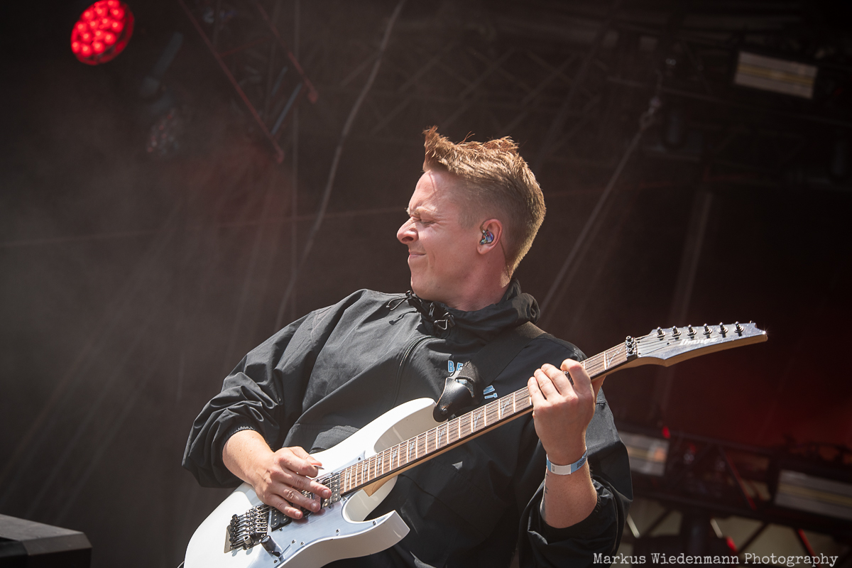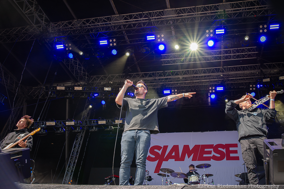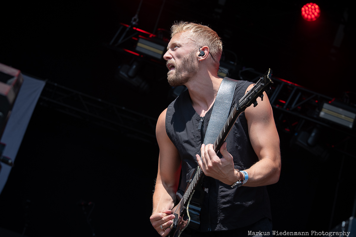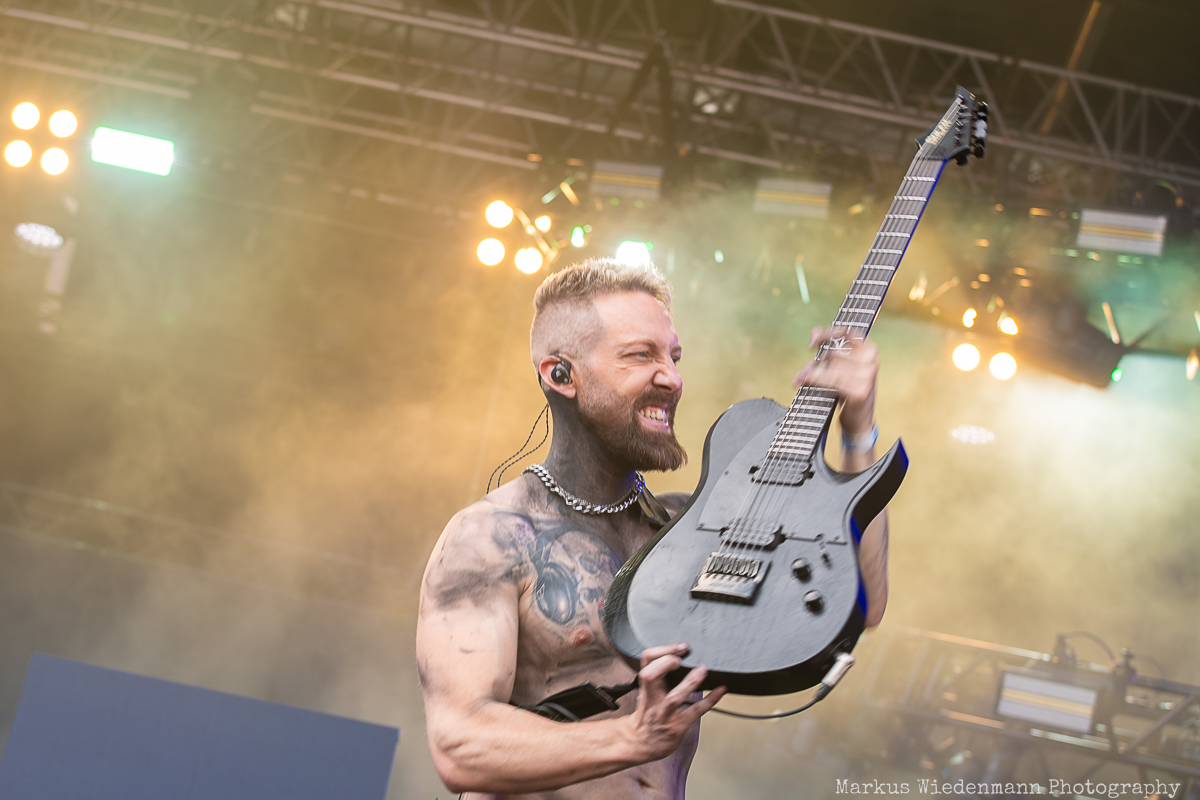 The difference between The Chats music and the following act is as big as the difference between night and day. Next on the list is Sweden’s Smash Into Pieces. The Chats’ rebellious spirit makes room for catchy alternative metal. The stage setup is already different as Smash Into Pieces brings LED screens on stage to visually support their show. The brightness of this sunny summer day prevents the screens from having their full impact, but that’s not much of an issue because the band clearly enjoys performing. The songs’ hooks also restarted today’s party vibe, and the flame fountains during the set added to the heat of this already hot summer day. Fans are witnessing a passionate performance that prepares everyone for the second half of today’s lineup.
