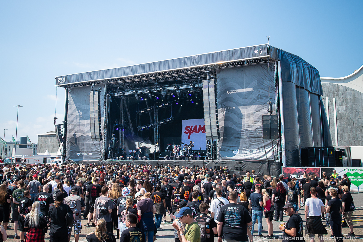 As in previous years, Elbriot features a diverse line-up covering many genres, with a focus on rock and all shades of metal. The task of kicking the day off falls to a Danish band. Hailing from Copenhagen, Siamese will start their set in a festive way. It’s very rare for a metal festival to be kick-started by a violin. Siamese, however, begin their performance in this unusual manner before shifting to powerful alternative rock. With big hooks and some raging outbursts, Siamese’s music has everything needed to get a crowd into the right mood for a festival day. The Danes’ energy and vibe is well received by fans, leading to a rather large crowd in front of the stage, which is impressive considering the early start time. It could also be that more than just some Danes crossed the border to join the festival. Nevertheless, Siamese delivered a solid and versatile rock set, setting the mood for the day.